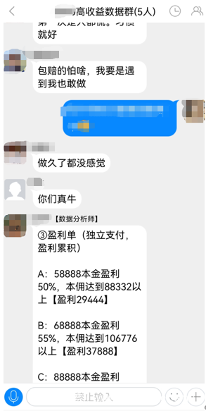 在该聊天应用中,接待客服以物流发货需5-7天,在等待期间可以参与其他兼职活动为名,邀请用户参与刷单,即在指定的平台购买认购单。用户前期投入获得小额返利,后期用户完成认购任务后,却无法提现,对方以提单需修复为由,要求用户垫付认购单的40%资金,用户发觉受骗。