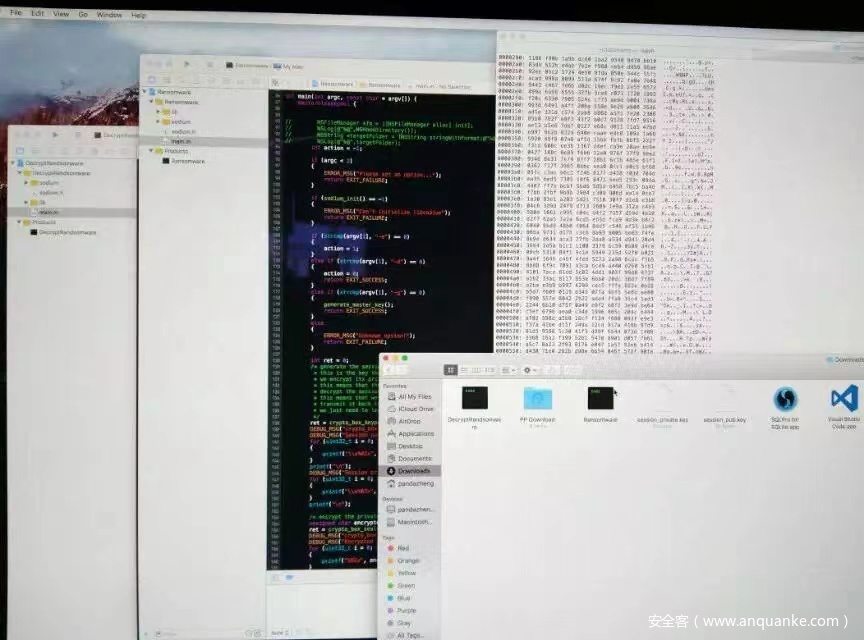 2015年之后国外各大安全厂商都开始大量发布与勒索病毒相关的分析报告,只是可能当时关注的人并不多,像Petya/Locky/RansomCerber等,当时针对各个平台的勒索病毒研究就已经开始流行了,国内直到WannaCry爆发,勒索病毒攻击才逐渐出现在大众的视眼当中,记得笔者在2015年从事OSX平台恶意软件研究的时候,曾把fg!开源的一款简单的OSX平台勒索病毒样本源代码进行了二次修改,添加了一点间谍窃密的功能,就是一个完整的勒索病毒家族,如下所示: