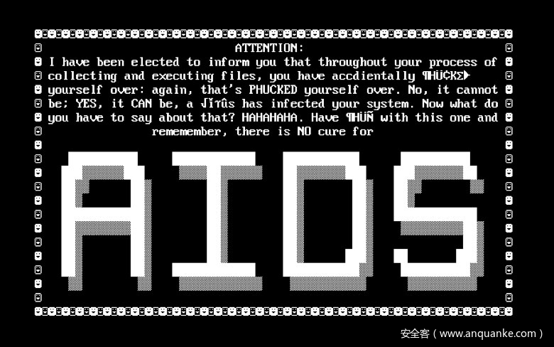 勒索病毒属于恶意软件的一种病毒类型,这种病毒并不是现在才有的,早在1989年哈佛大学博士学位的生物学家约瑟夫波普Joseph Popp开发了一款软件,并向世界卫生组织艾滋病会议的参加者分发了20000张受感染的磁盘,以艾滋病信息-入门软盘命名,当软盘插入电脑就会感染该勒索病毒,弹出勒索提示信息框,受害者必须在巴拿马的邮政邮箱向PC Cyborg Corporation发送189美元,以解锁电脑的访问权限,这就是最早的勒索病毒以及勒索攻击活动。