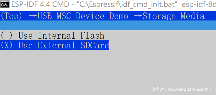 切换到C:\Espressif\frameworks\esp-idf-v4.4\esp-iot-solution\examples\usb\device\usb_msc_wireless_disk>目录;