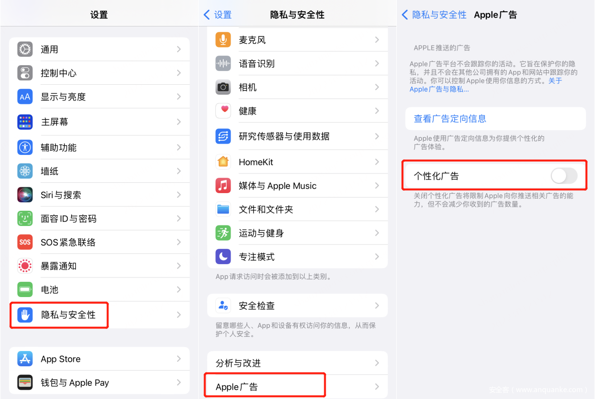 关闭路径:【设置】-【隐私】-【Apple广告】,将【个性化广告】进行关闭即可。