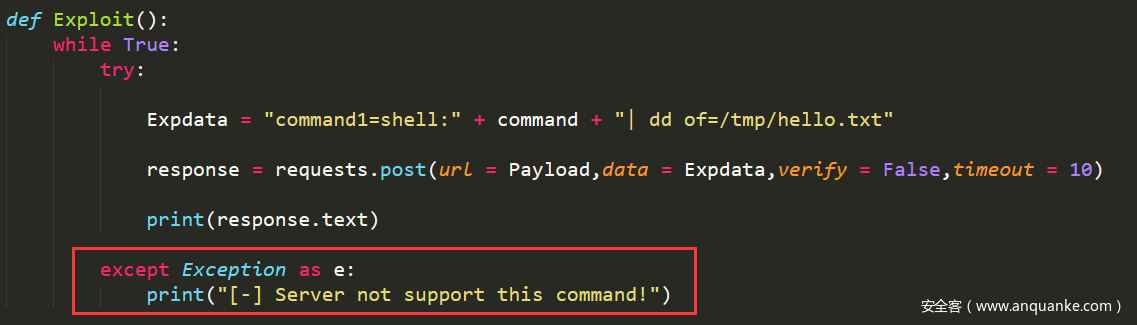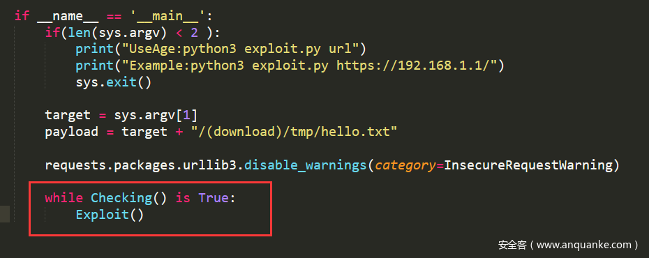 还有一个逻辑就是,你必须检测出漏洞了才能够继续往下到Exploiot()函数进行利用,所以这个地方我们在加上一个while语句的判断