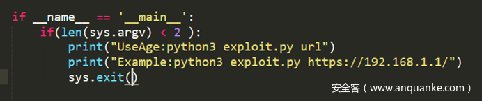 那么我这里用到的if(len(sys.argv) < 2)如果成立,以为着后面时没有参数的,所以这里我输出一个UseAge和Example告诉使用者格式应该是怎样的