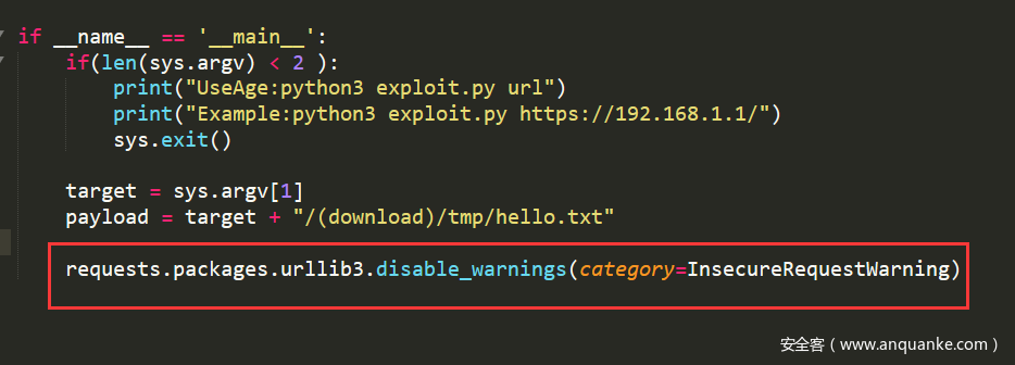 print(“| Example: python3 exploit.py https://192.168.1.1/ |”)