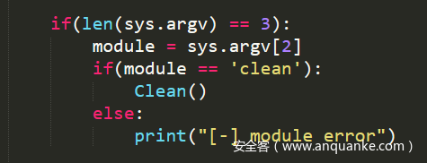因为我们清理的话需要传入两个参数,所以这里加上一个sys.argv对传入进行判断,当第二个参数为clean则执行Clean(),否则报错