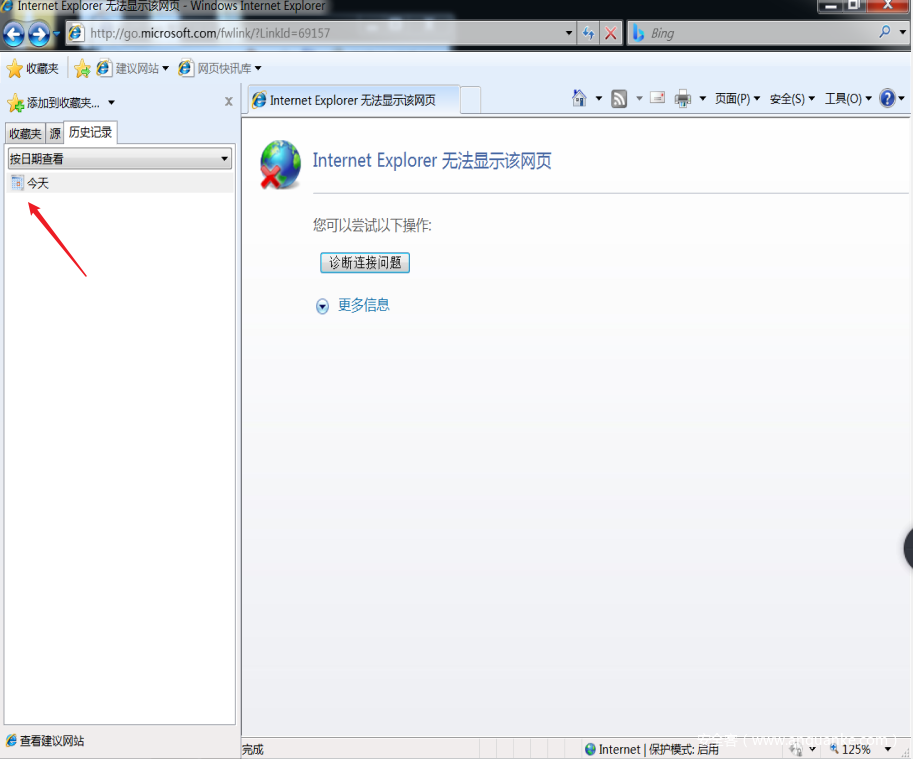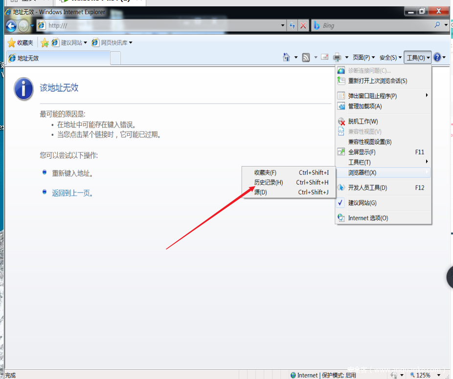 1.先打开ie浏览器,然后在浏览器打开历史记录