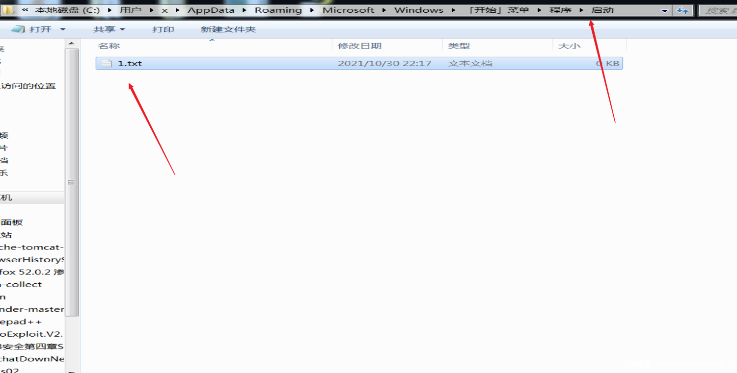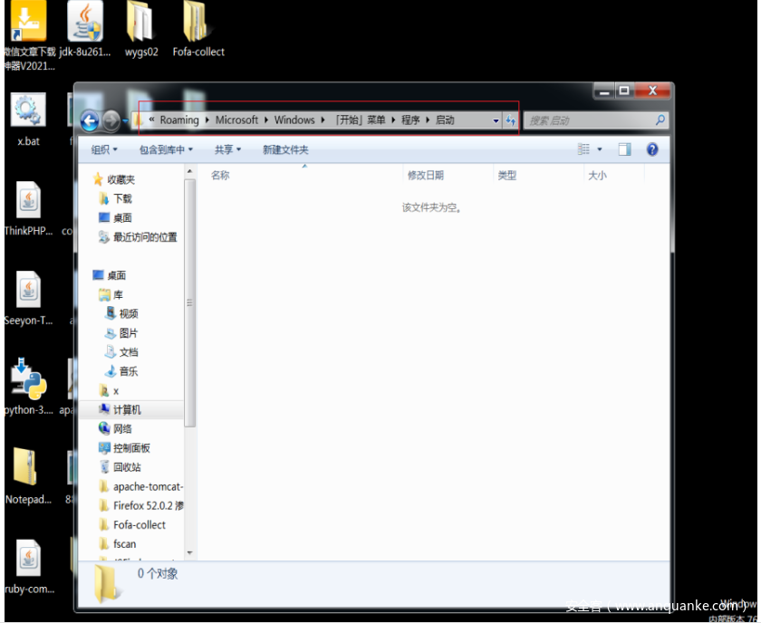 2.然后输入路径:C:\Users\x\AppData\Roaming\Microsoft\Windows\Start Menu\Programs\Startup,访问就看到了开机启动项里的文件