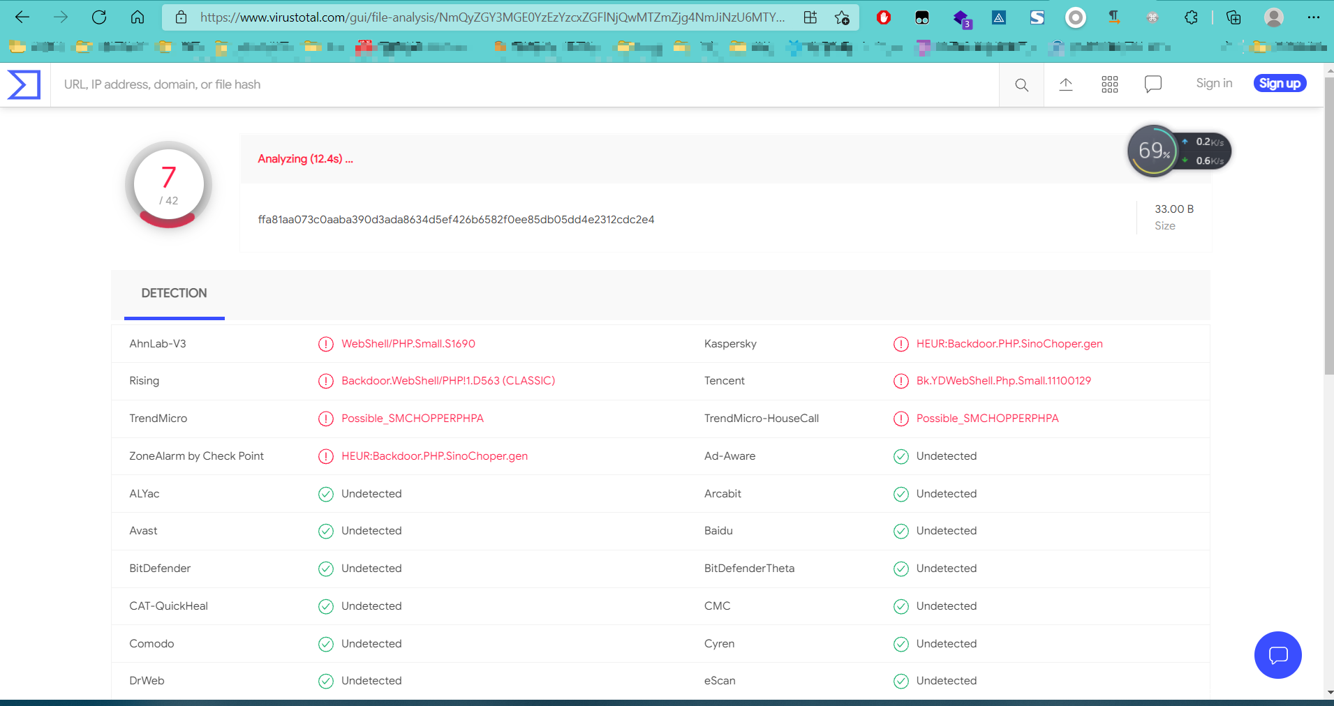4.将文件上传到virustotal进行查看,是否为恶意代码