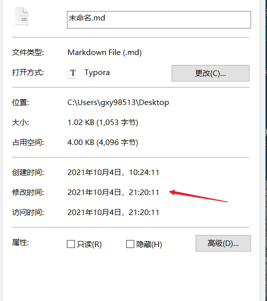 在windows系统下,文件属性的时间属性有:创建时间、修改时间、访问时间(默认情况下禁用)