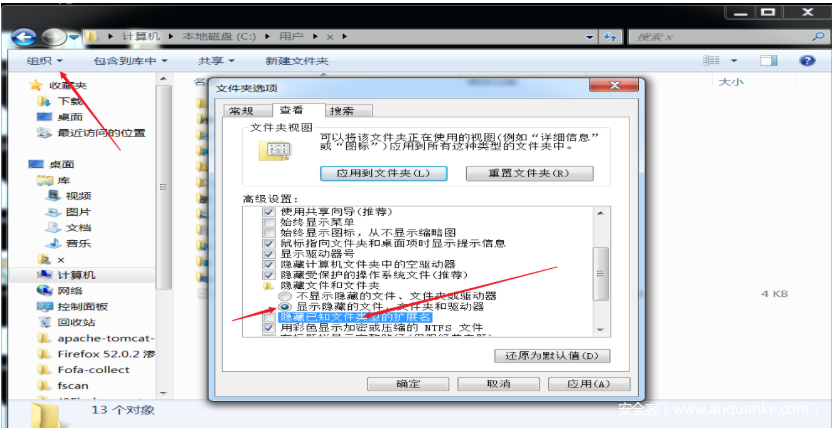 1.先进入组织,然后打开文件夹选项,把隐藏文件显示。