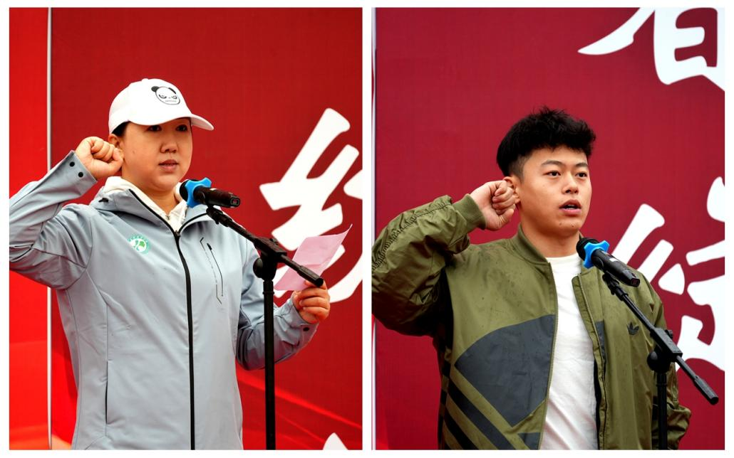 教师董彬彬和学生王佳涛分别代表全体裁判员和全体运动员进行了庄严宣誓。