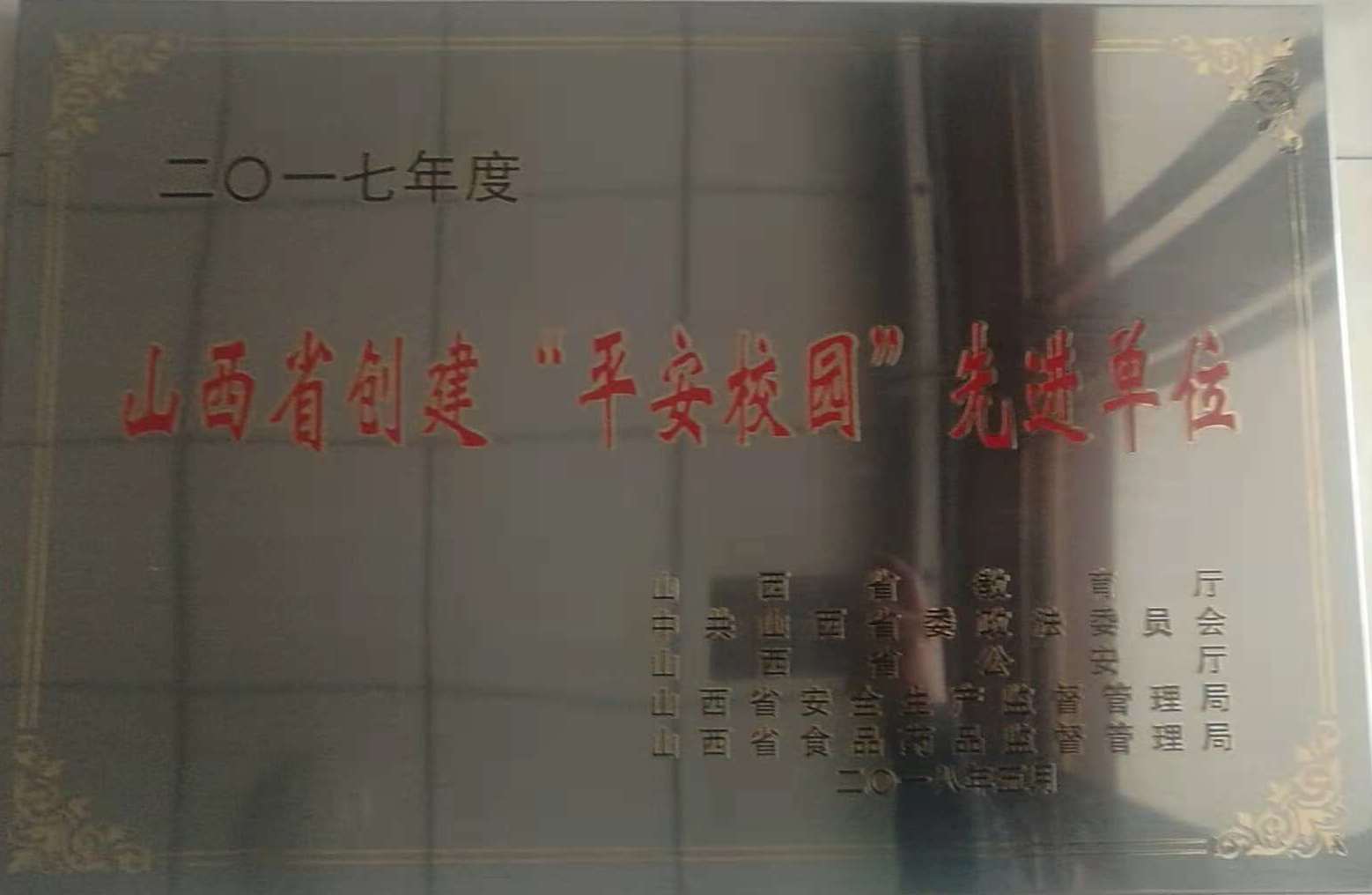 我院被评为2017年度“山西省创建‘平安校园’先进单位”