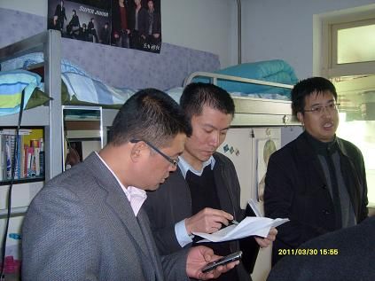 3月31日,李华荣院长、胡尔雅院长在后勤处、保卫处的陪同下视察了学生公寓。按照学院的“十二五”规划,学院将稳步提升招生规模,而现有的公寓格局将无法满足日后的学生住宿。此行视察的主要目的即实地考查,对宿舍格局的改变提出初步的方案。李院长向后勤处提出以下几点意见:一是尽快拿出一个整改方案;二是拿出整改过程的管理和协调办法;三是确定整改时间和资金核算。除此之外,李院长还视察了公寓的储水设施,查看了公寓周边的散水情况以及学院目前的排污状况,并提出了诸多的宝贵意见。