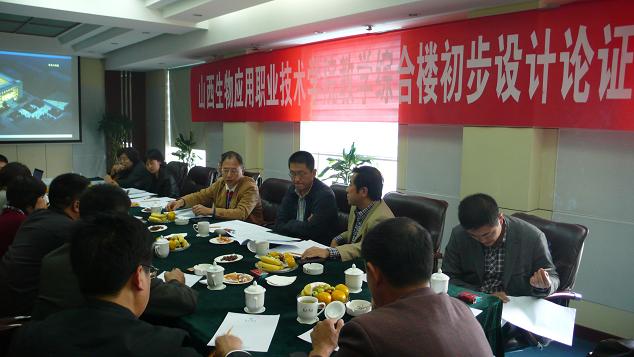 2011年10月13日下午,在西山宾馆召开了山西生物应用职业技术学院教学综合楼初步设计论证会。学院院长李华荣携分管院长胡尔雅、后勤处长郭敏等参加了此次会议,与会人员还有发改委、太原理工大学的专家成员,以及承揽此次设计工作的太原设计院的主要技术人员。会议首先由太原设计院就设计项目的相关内容进行陈述,之后由专家组就设计方案进行论证。专家组首先对教学综合楼的采址、整体设计方案给予了肯定,并就一些细节提出了宝贵、中肯的意见及建议,最终认同了现有的初设方案。最后作为院方,李华荣院长谈了两点,一是就教学综合楼的功能以及其建设的必要性做了进一步的阐释,二是对设计院的设计工作以及专家提出的意见及建议表示感谢。总之,此次论证会的圆满召开,教学综合楼的初计方案得以认可,为该项目的后续推进开了个好头,奠定了一个好的基础。