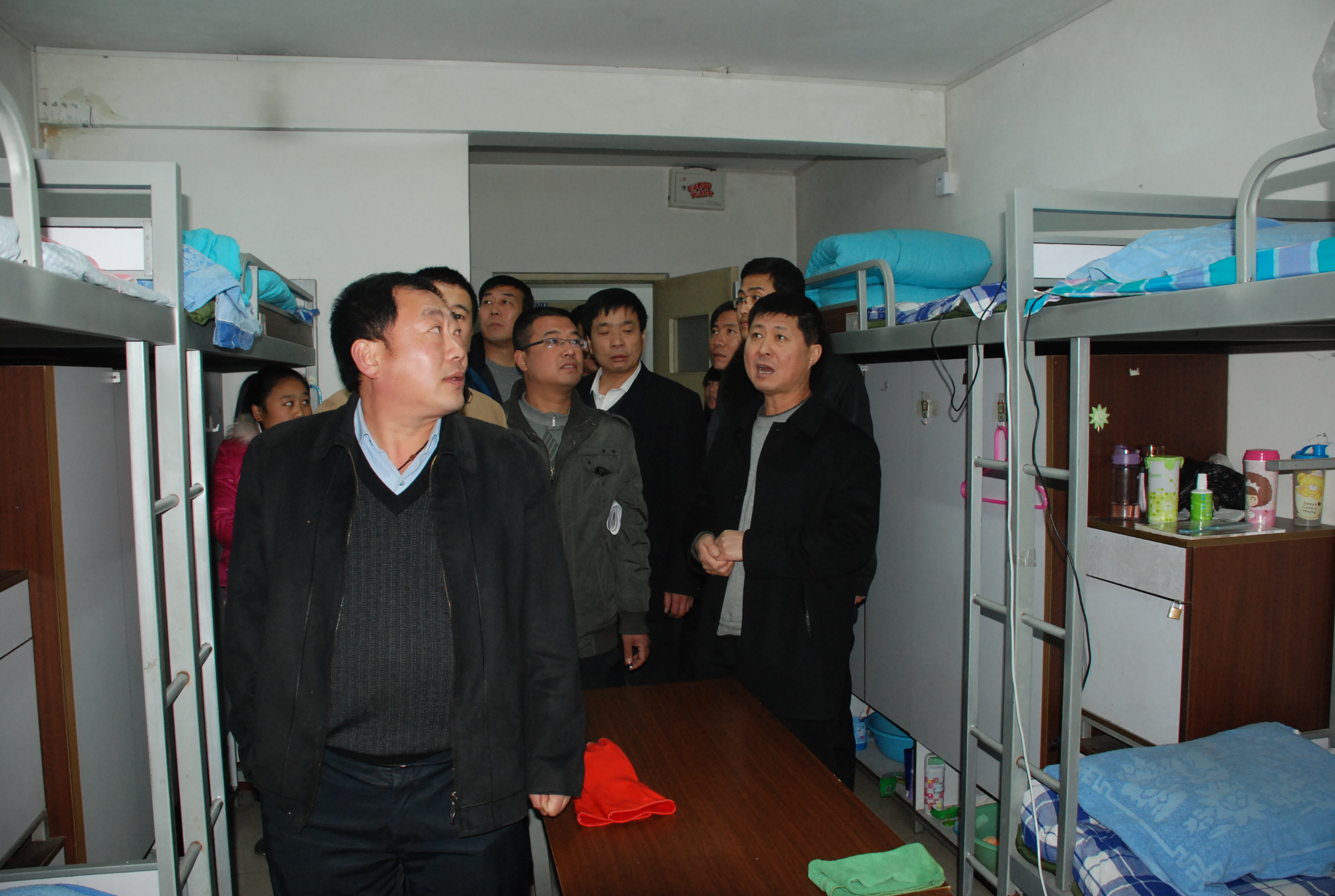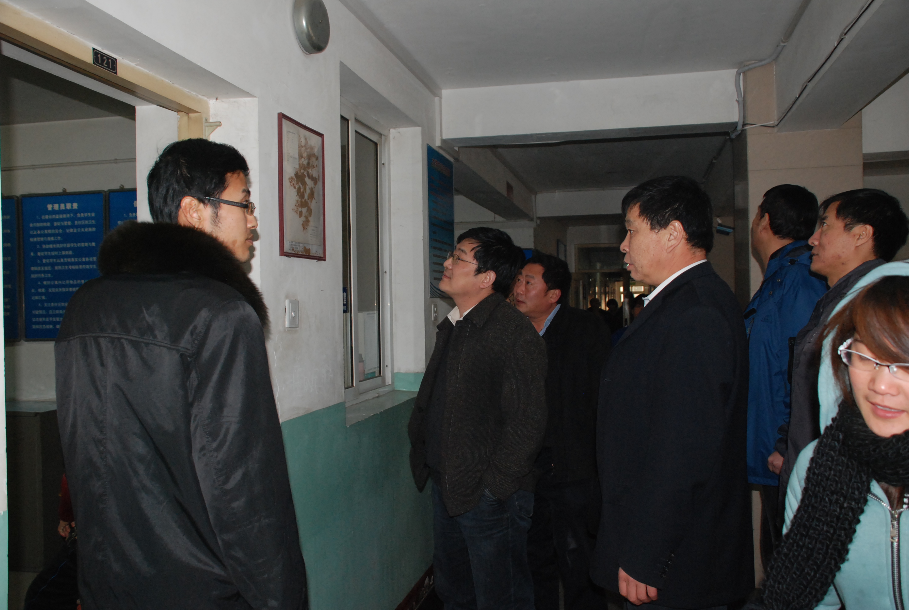 2011年12月2日下午14:30分,山西省教育厅创建“平安校园”评估小组,在以山西省食品药品监督管理局食品监管处黄登宇处长为检查组组长的带领下一行四人,对我院创建“平安校园”的工作进行评估验收,主管院长胡尔雅在后勤处长郭敏、副处长范春水等相关部门领导的陪同下,对其中我院学生公寓的消防设施、安全疏散通道、安全出口及安全预案进行了实地考查,并对我院学生“标准化公寓”安全保障工作给予了高度评价。
