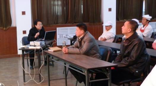 王玉壁从食堂从业人员要有安全意识、服务意识、卫生意识和法律意识为出发点,对如何预防食品中毒、如何处理卫生安全突发事件等问题进行了讲解和强调,并重点从食品的进货、加工、留样、消毒等环节进行细致的培训。