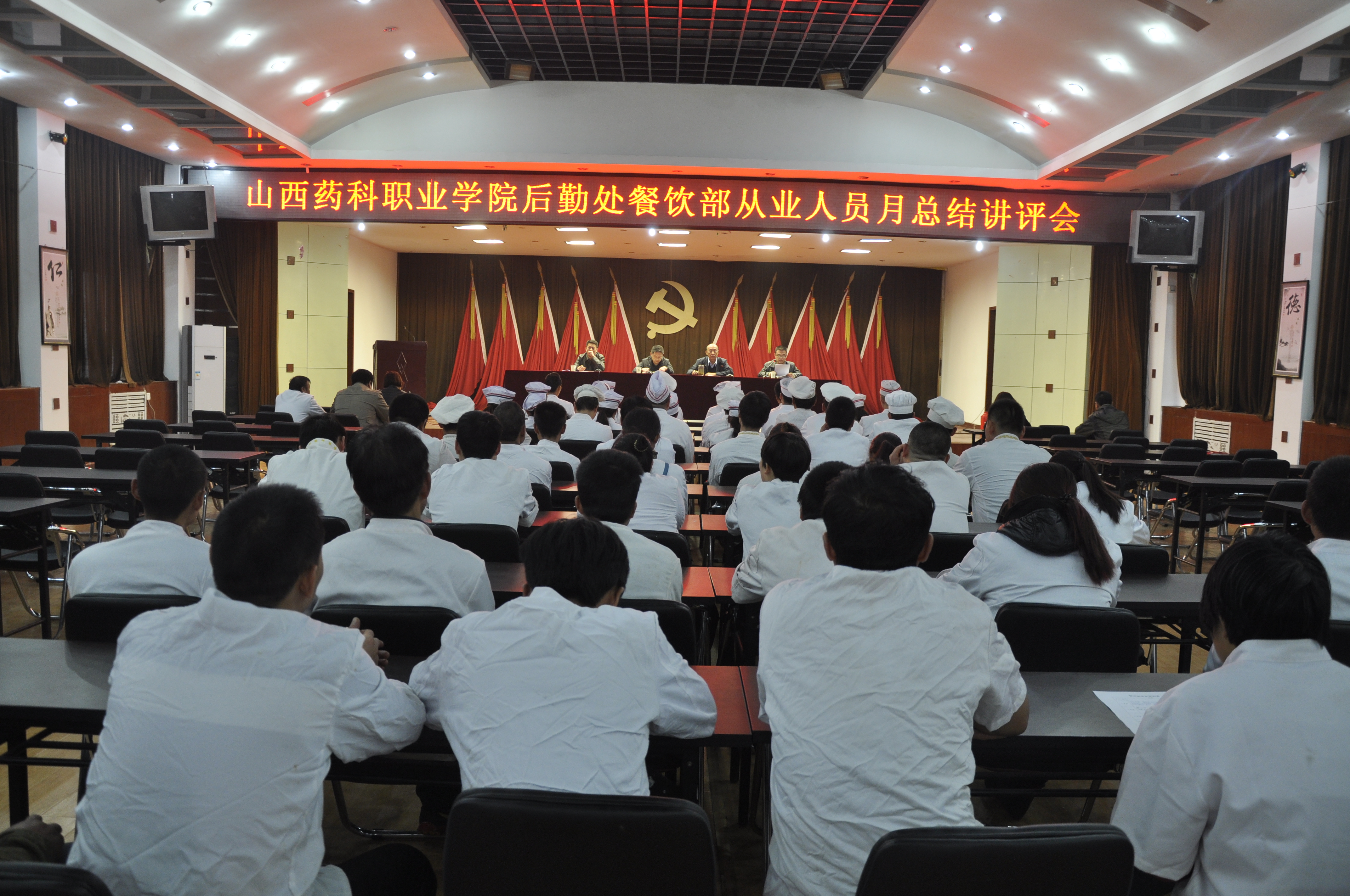 10月31日下午,后勤处餐饮从业人员月工作总结讲评会在文体活动中心召开。院党委副书记尹士优出席会议并讲话。后勤处处长张晋永,副处长范春水、王茂林,餐饮部全体工作人员及学院各食堂工作人员参加会议。会议由后勤处副处长王茂林主持。