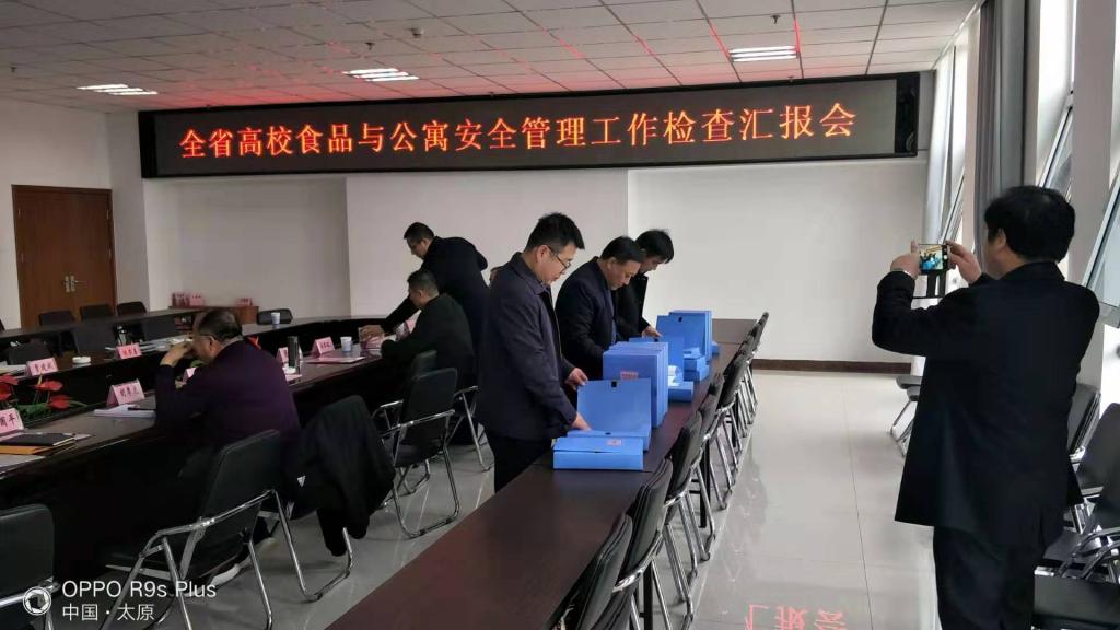 为加强高校食堂食品及学生公寓管理,防止安全事故发生,根据晋教安稳函 ﹝2019﹞35号文件通知精神,2019年11月12日上午, 山西省高校食品与公寓安全管理工作G组一行8人莅临我院检查指导。学院党委委员、副院长陕荣善,学院党委委员、副院长贾建斌及学生工作部(处)、后勤处相关人员在学院523会议室进行了工作汇报。会议由贾建斌同志主持。