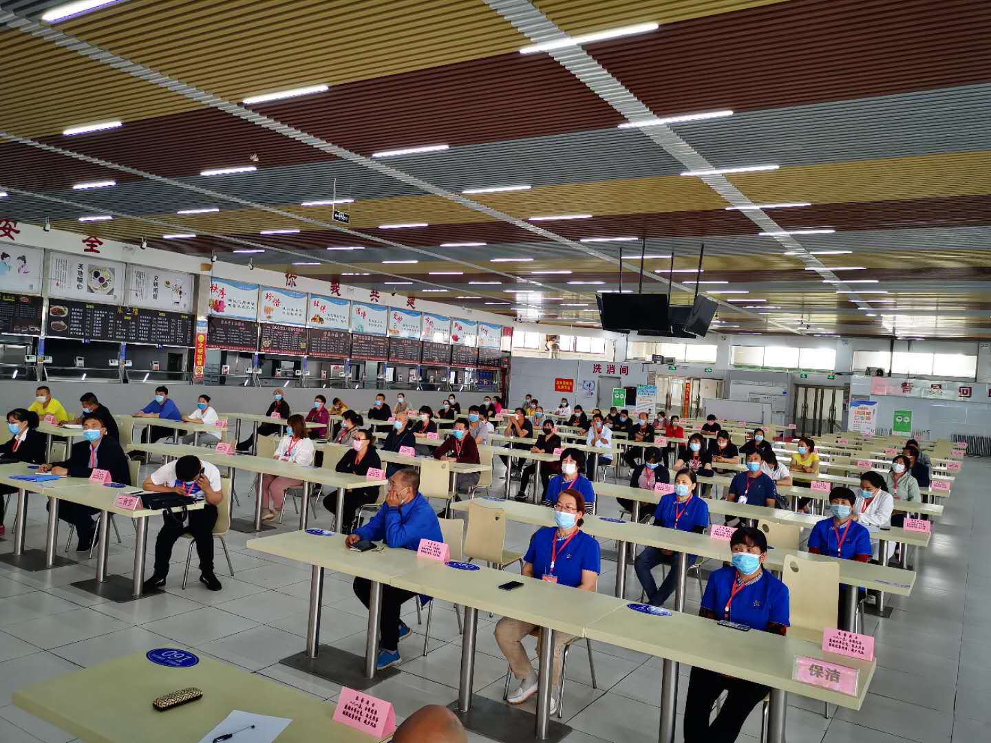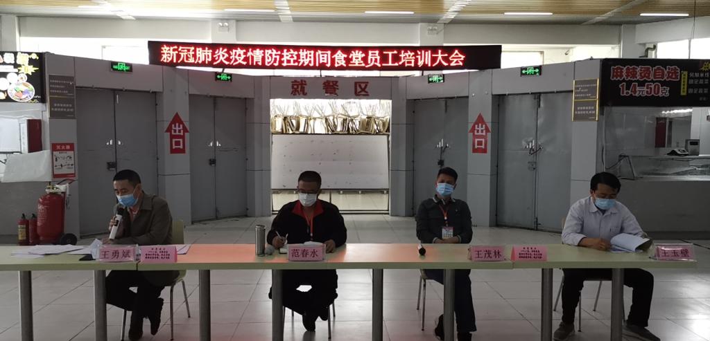 5月12日,后勤处在学生食堂召开新冠肺炎疫情防控期间食堂员工培训会。后勤处处长王茂林、支部书记范春水、医卫科长王玉壁及全体餐饮从业人员参加了会议,会议由餐饮部主任王勇斌主持。