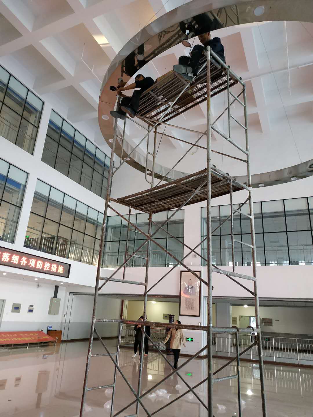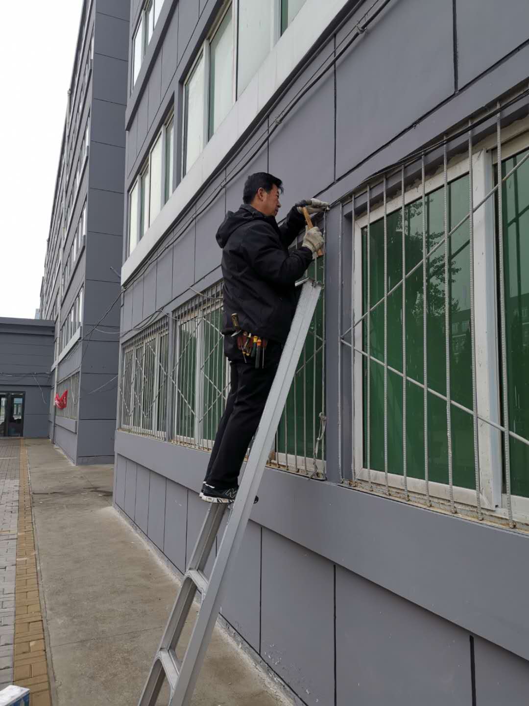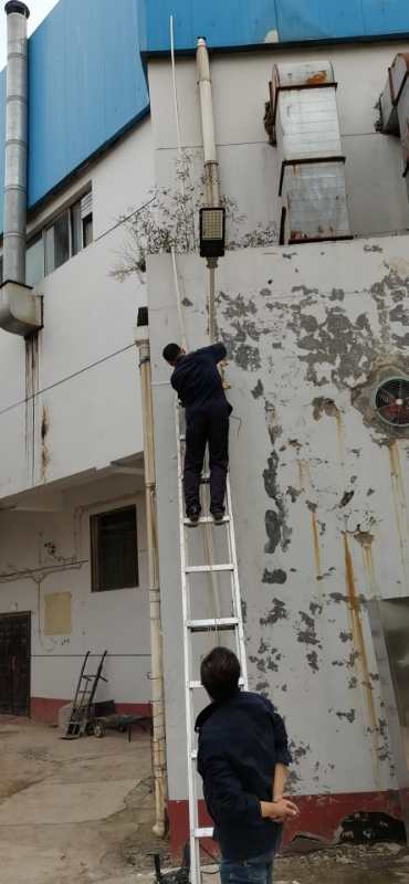 动力科工作人员对室外路灯加固检修