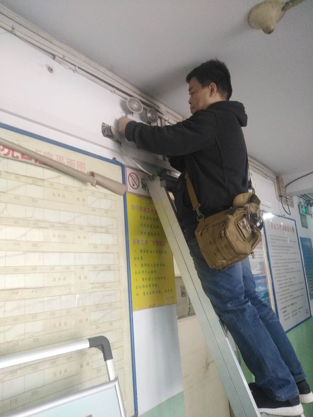 工作人员对学生公寓室内线路进行检查