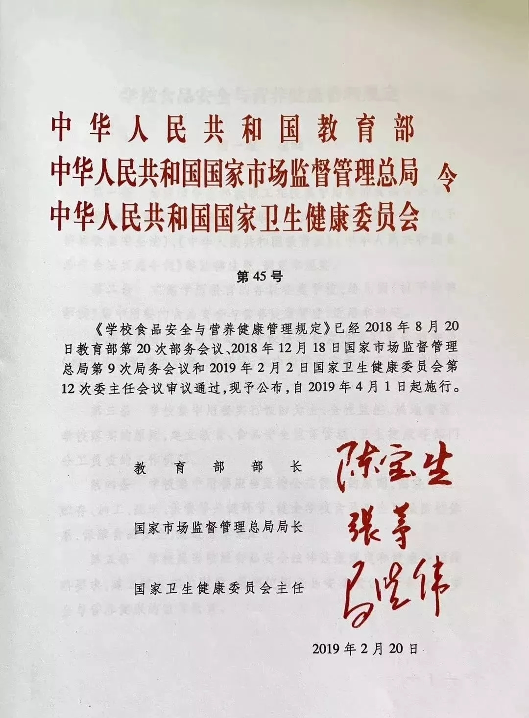 第六十四条 本规定自2019年4月1日起施行,2002年9月20日教育部、原卫生部发布的《学校食堂与学生集体用餐卫生管理规定》同时废止。