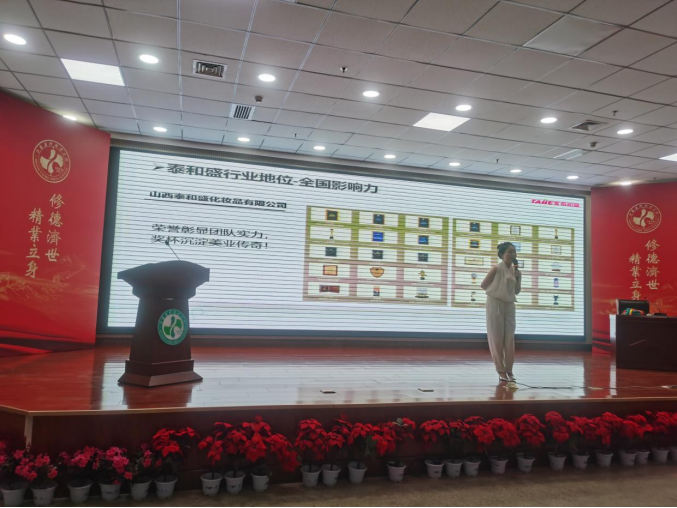 5月9日是学院67周年校庆日,化妆品医美系特邀合作企业山西泰和盛化妆品有限公司为我系学生带来了一场美丽与智慧并重的讲座。讲座在学术报告厅举行,吸引了数百名对化妆品行业感兴趣的学生参加。