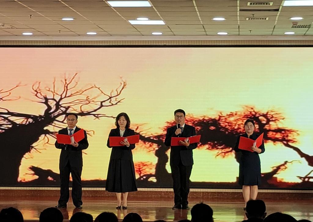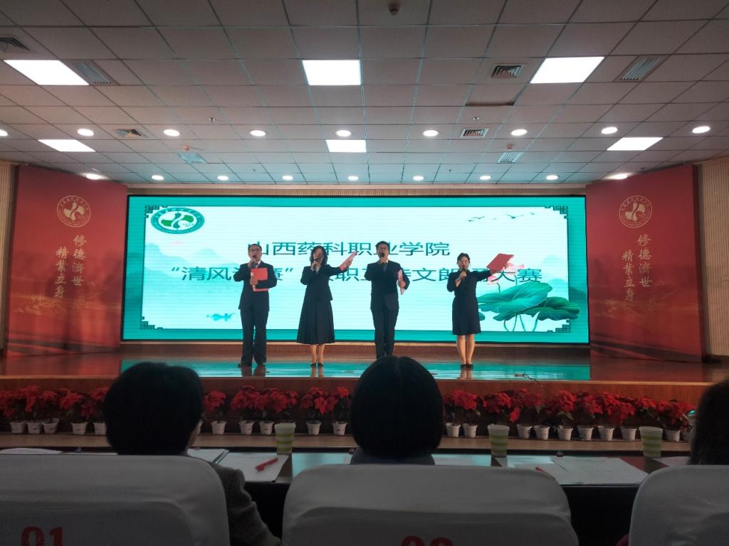 本次诗文朗诵比赛是学院为加强校园廉洁文化建设,进一步丰富廉政教育形式开展的重要活动,也是化妆品医美系廉洁文化建设“五个一”活动的重要载体。化妆品医美系高度重视,认真选送作品参赛。《生如胡杨》由师生共同参与,在共同创作参与朗读作品的过程中,我系教师充分抓住诗歌表达中蕴含的“刚正不阿、屹立不倒”的精神内核,引导全系师生共同领悟传承“清廉律己,至公无私,心忧天下”的中华传统廉洁文化,充分发挥廉洁文化教育、示范与熏陶作用,营造清风正气的校园氛围。参赛选手们利用业余时间,认真对词对句,不断联排走位打磨作品。比赛中,我系党总支书记范张姣、副书记魏永鹏、分团委书记黄高伟、教师代表李一奇带领同学们第一个出场,以昂扬的精神面貌、精湛的朗诵技巧、过硬的综合素质得到了评委老师的一致好评!