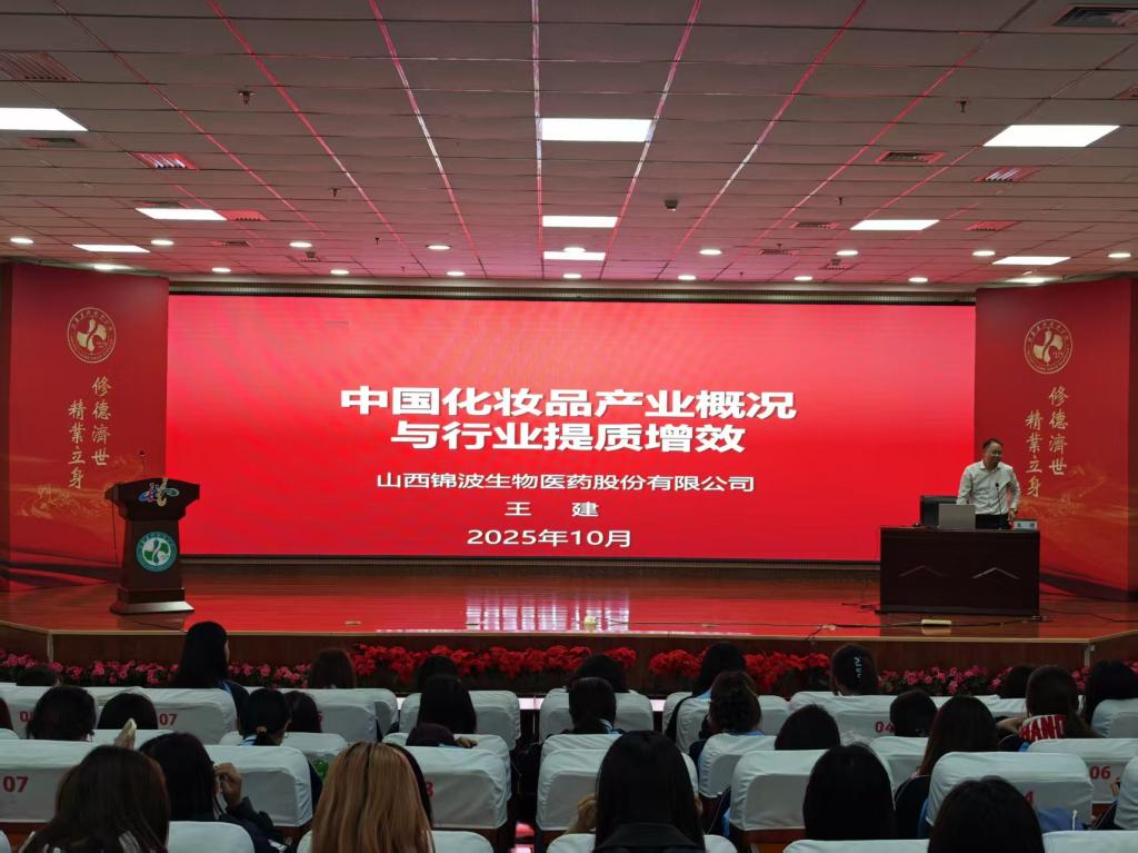 为进一步搭建专业与产业的桥梁,帮助化妆品医美系学生明晰化妆品行业发展脉络、把握前沿趋势。2025年10月15日下午,化妆品医美系特邀杰出校友、山西锦波生物医药股份有限公司锦波创新研究院副院长兼质量总监王建重返母校,开展“中国化妆品发展趋势概况与行业提质增效”主题讲座,系党政班子及一、二年级化妆品类专业学生参加本次会议,会议由化妆品医美系副主任贾文雅主持。