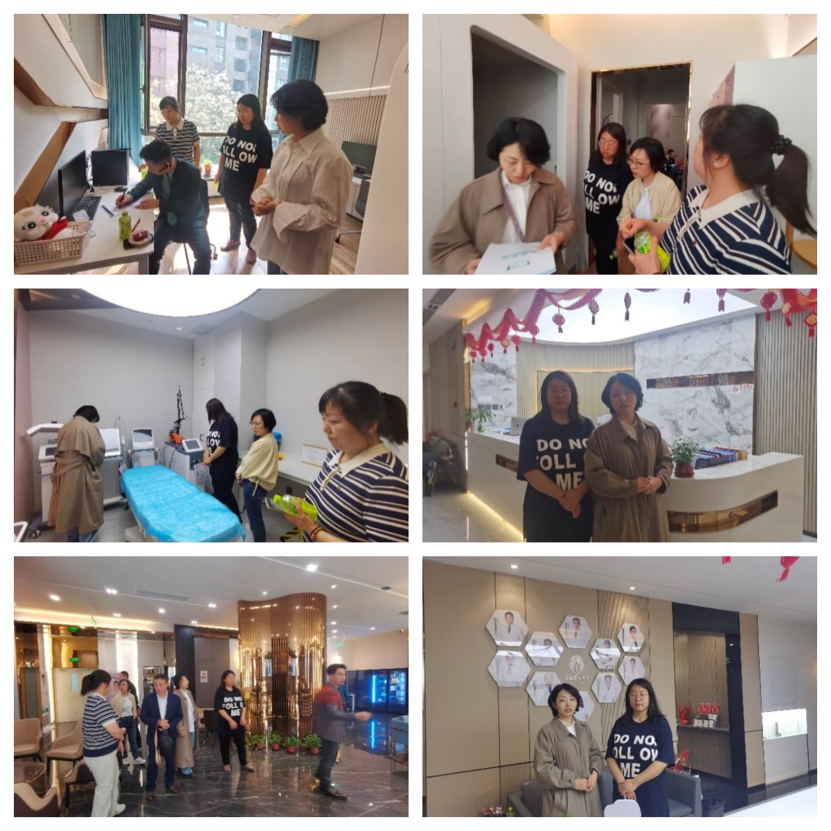 作为中兴锦绣美业集团旗下的高端医美机构,菲庭医疗美容中心以"科技+美学"为特色,汇聚国际先进设备与技术。调研团队重点考察了医美行业新技术应用场景,包括光电美容、微创抗衰等项目的标准化操作流程,并与企业技术总监就"医学美容技术专业人才能力模型"展开研讨。