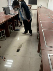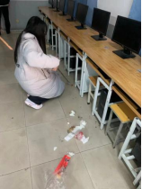 在我系所管辖的电教楼的实训室,志愿者们手拿笤帚、拖把、夹子,清除实训室里的浮尘和垃圾,大家有序分工,协同合作,为同学们营造一个整洁、舒适、有序的实训环境,进一步弘扬了“奉献、有爱、互助、进步”的志愿服务精神。