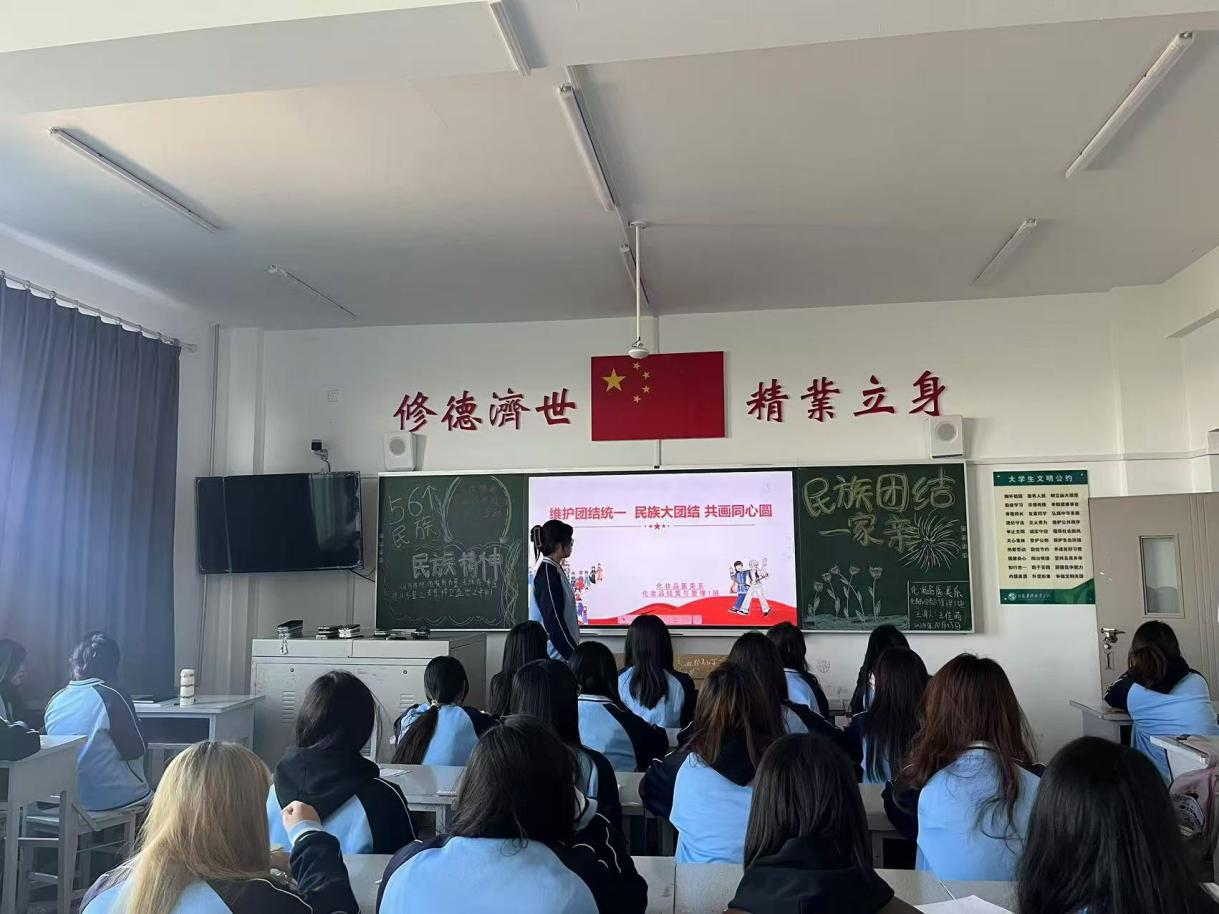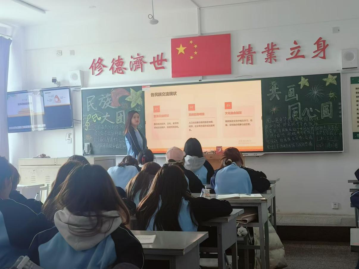 团课期间,团支部书记通过ppt和视频的形式,围绕我国民族政策的发展历程以及民族团结在各领域的重要性,深入贯彻党的民族理论与民族政策等内容做了详细阐述。随后通过开展“石榴籽一家亲”活动,引导广大团员和青年不断增进对伟大祖国、中华民族、中华文化、中国共产党、中国特色社会主义的认同,加深同学们对共同团结奋斗、共同繁荣发展的认识,不断铸牢中华民族共同体意识。各班团支部书记通过生动的历史故事和现实案例,向团员青年展示了中华民族在团结奋斗中取得的辉煌成就,不仅加深了对民族团结重要性的认识,更激发了同学们为维护民族团结、促进社会和谐贡献力量的热情。