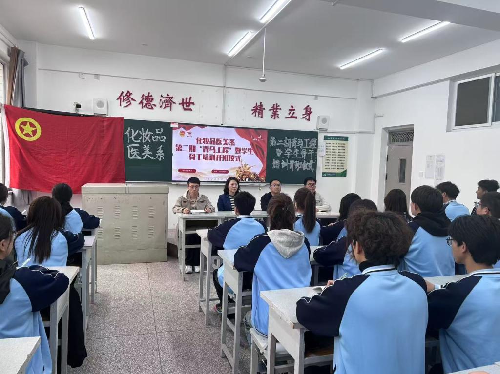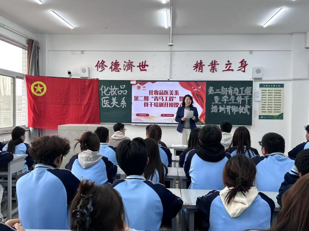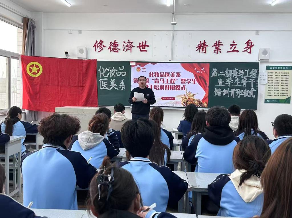 为深入学习党的二十届三中全会精神,认真贯彻习近平总书记关于青年工作的重要思想和关于教育的重要论述,全面推进我系“青年马克思主义者培养工程”走深走实,进一步提高青年学生骨干的思想政治水平和能力素质,化妆品医美系于3月27日在东教学楼509教室组织召开了第二期“青马工程”暨学生骨干培训班开班仪式。系党总支书记范张姣、副书记魏永鹏、辅导员周磊及50多名入党积极分子、系分团委、学生会骨干参会。会议由系分团委书记黄高伟主持。