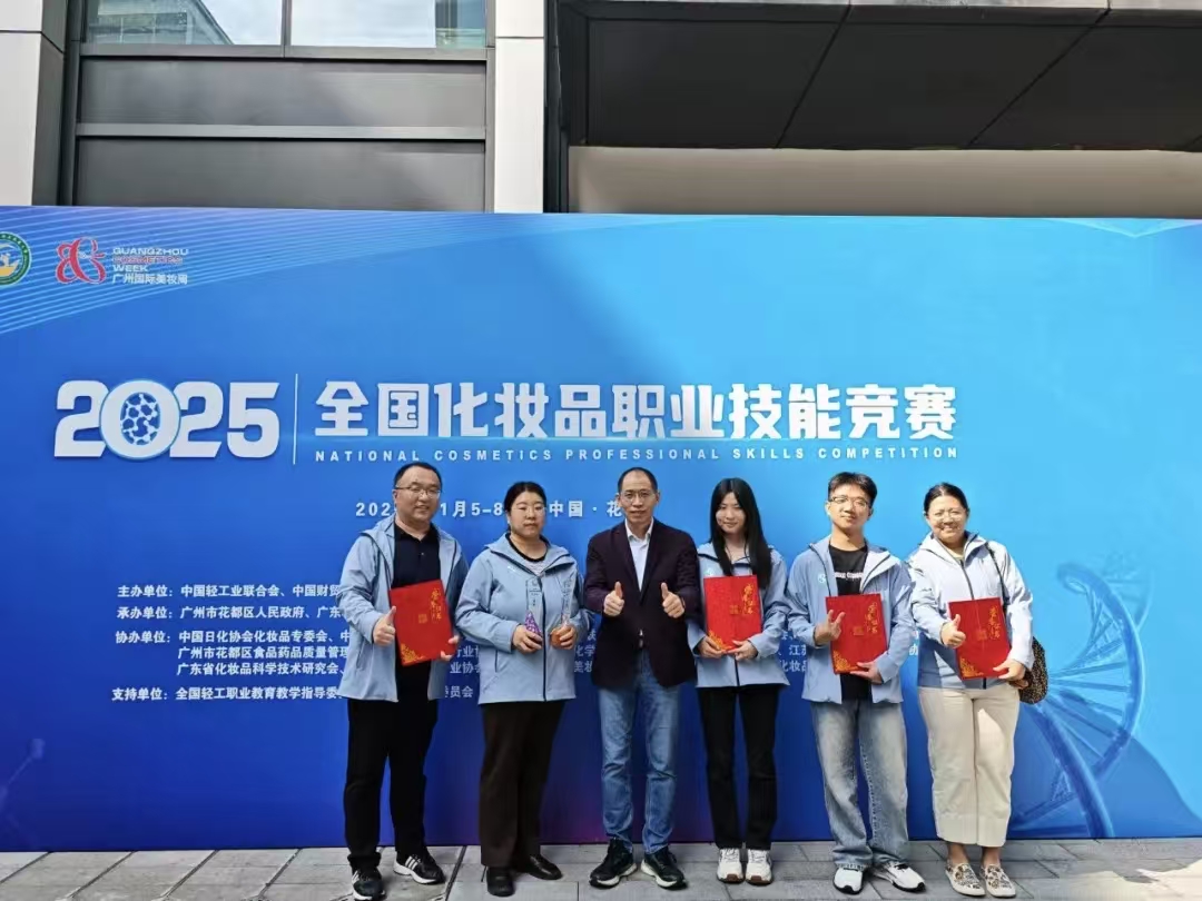 此次载誉而归,是我系“以赛促学、以赛促教、以赛促改”育人理念的鲜活注脚。此次获奖既是荣誉更是动力,学院将以赛事成果为基石,凝练竞赛经验反哺课堂教学,进一步深化“校地企”协同育人机制,为化妆品行业输送更多“精工艺、善创新、强素养”的高素质技术技能人才。