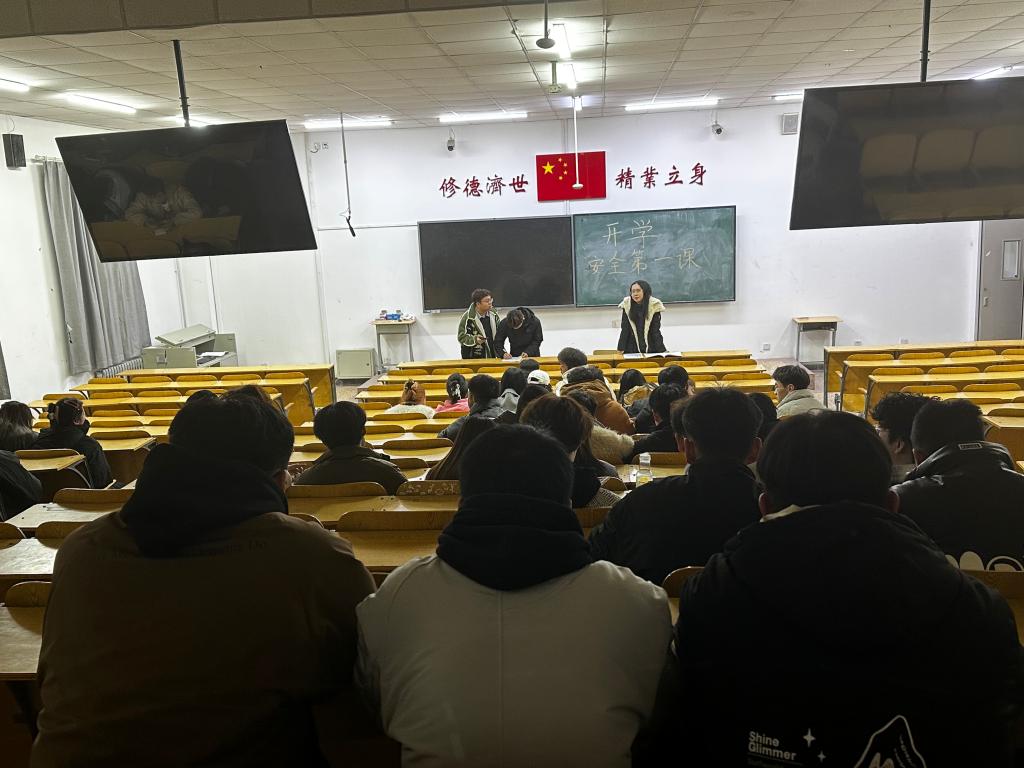 班会上,辅导员结合本班级期末成绩,对上学期学生学习情况、班级学风建设情况进行了总结,通过案例分析、互动问答等形式重点强调了学风建设的重要性,要求同学们尽快从假期生活进入学习状态。随后,针对春季学期易发的安全问题,围绕消防安全、人身财产安全、交通安全、心理健康安全等方面,通过案例的方式进行深入讲解,引导学生树牢“人人成为自身安全的第一责任人”的理念。