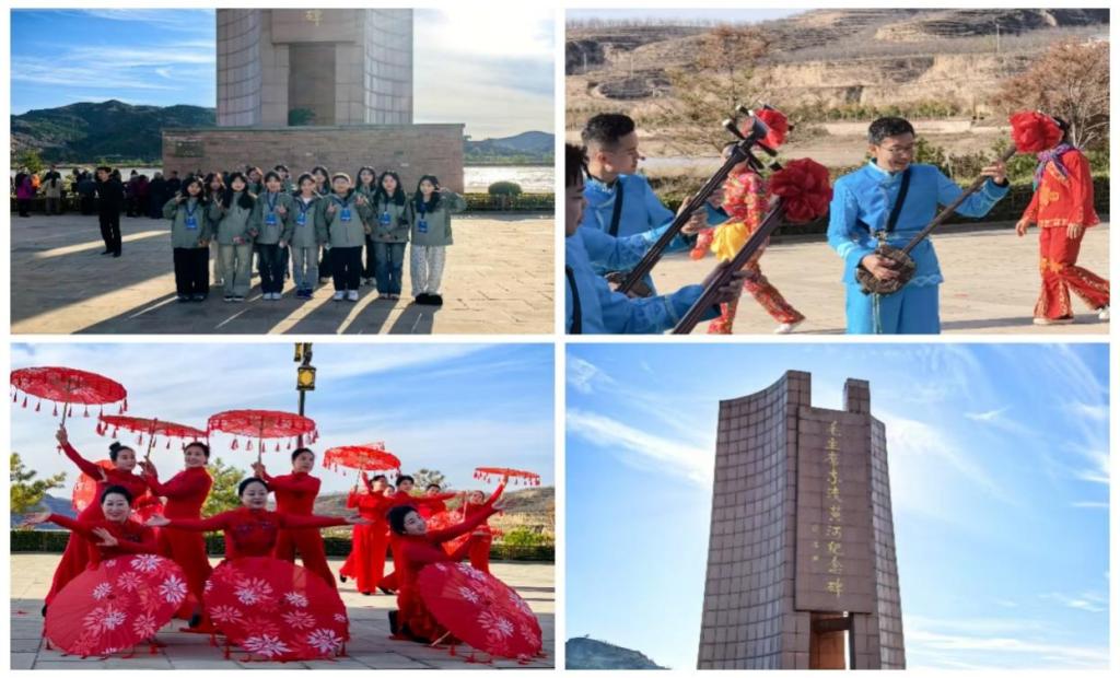 下午,在团委老师的带领下,同学们欣赏了扭秧歌、弹三弦等当地的非物质文化遗产,陆续参观了碛口古镇、李家山村、西湾村明清一条街,观看了碛口记忆直播。并在毛主席东渡黄河纪念碑前开展了红色研学活动,大家亲身感受了临县黄河流域生态保护和高质量发展的成果。
