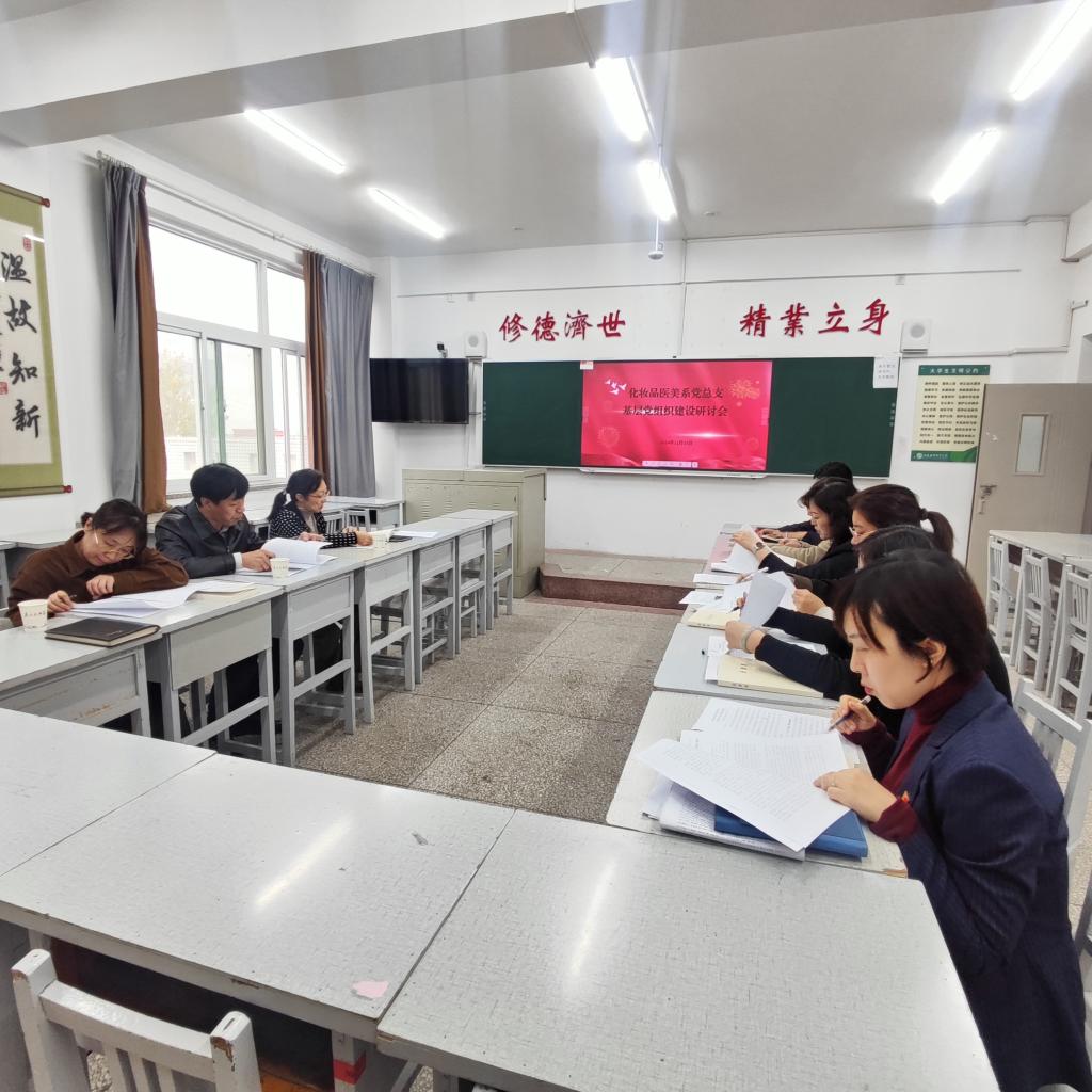 11月15日下午,化妆品医美系党总支组织召开基层党组织建设专题研讨会,院党委委员、副院长原超到会指导,中药系党总支书记杨芳、副书记马明星、组织员卫瑜列席旁听,化妆品医美系党总支班子成员、下设党支部书记及部分党支部委员参加。会议由化妆品医美系党总支书记范张姣主持。