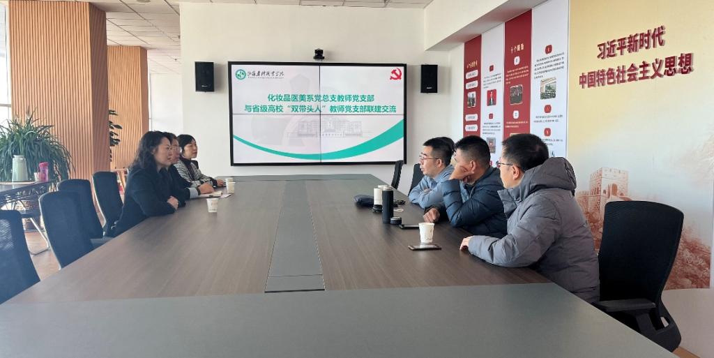 11月29日,化妆品医美系党总支教师党支部邀请山西省高校“双带头人”党支部--太原工业学院环境与安全工程系教师第四党支部开展联建活动。太原工业学院环境与安全工程系教师第四党支部为山西省委教育工委遴选的 “全省高校‘双带头人’教师党支部书记工作室”创建单位,入选省级“双带头人”教师党支部书记“强国行”专项行动团队。我系党总支书记范张姣对太原工业学院环境与安全工程系教师第四党支部书记张恒慧、支委赵润柱、党员代表贺东亮的到来表示热烈欢迎。我系党总支教师党支部书记贾文雅、组织委员王坤、宣传委员尹雪婷参加交流。双方就支部建设情况、党建业务双融双促工作开展进行了深入交流,座谈气氛热烈,双方党支部成员就党建共建、业务提升、科研合作等方面达成初步合作意向。