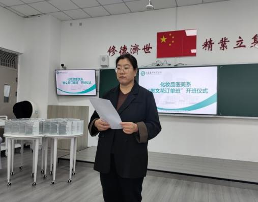 11月22日,化妆品医美系与广州樊文花化妆品有限公司合作的樊文花产业学院2024级订单班在学院樊文花面部护理实训室举行开班仪式。广州樊文花化妆品有限公司山西分公司副总经理靳丽娜、化妆品医美系党政班子、化妆品经营与管理专业教研室教师及樊文花订单班的全体同学参加。开班式由化妆品医美系副主任贾文雅主持。