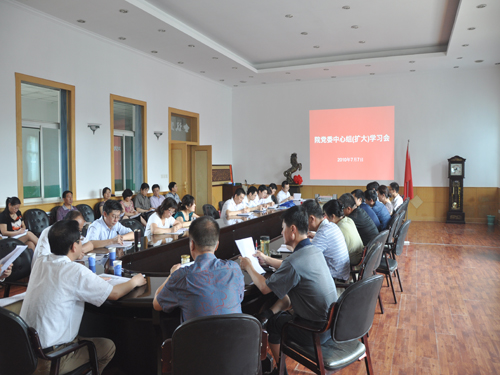 为认真贯彻落实省委组织部关于学习全省高校新任领导干部培训班辅导报告的通知要求。7月7日上午,我院召开党委中心组(扩大)学习会。院党委成员及全体处、科级干部参加了学习会。学习会由院党委书记张瑞芳主持。