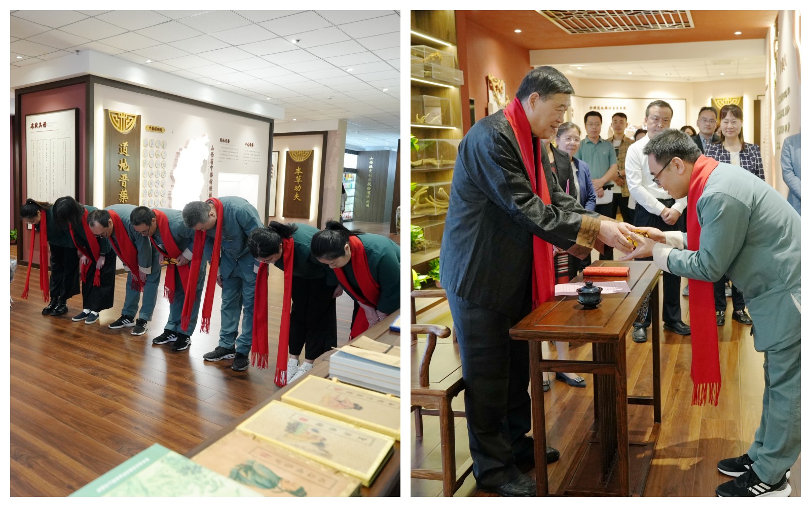 精业赓续神农事,兴药达济人民祉。近日,山西药科职业学院在中药标本馆举行广誉远国家非物质文化遗产传承人柳惠武工作室揭牌暨拜师仪式,院领导王旭、张轩萍、刘志伟、原超出席活动现场,相关部门负责人和中药系部分教师参加活动。