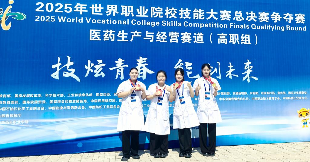 “我们获得了金奖,我们创造了历史,太棒啦!”在2025年世界职业院校技能大赛医药生产与经营赛道总决赛争夺赛的颁奖现场,山西药科职业学院的参赛学子紧紧相拥,激动的欢呼声中闪烁着泪光。金秋时节,这项国家级顶级赛事在山西药科职业学院圆满落幕,我院中药系与药学系两支参赛队伍双双摘金,山西省教育厅第一时间发来贺信,致以热烈祝贺。与此同时,远赴芜湖参赛的食品系参赛团队也在食品与粮食赛道上奋力拼搏,捧回一枚沉甸甸的铜奖。奖牌的颜色虽不同,却同样闪耀着汗水与坚持的光芒。每一支队伍都在这个秋天,用匠心织就青春梦想,用技能书写家国情怀。现在,就让我们一起走近他们,了解荣誉背后的奋斗故事。