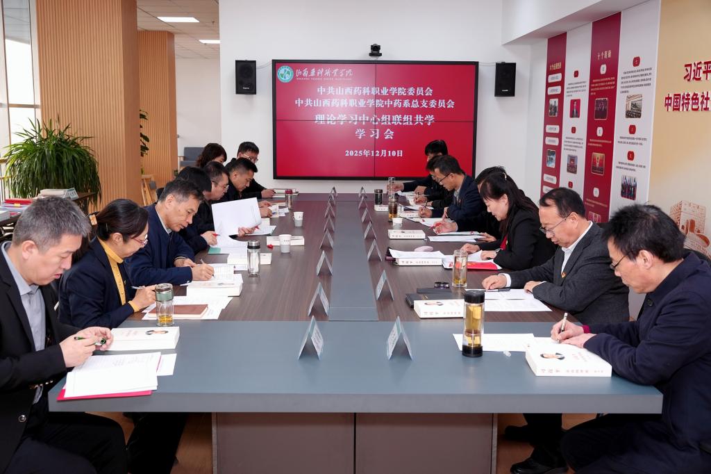 张轩萍指出,通过集中学习和交流研讨,我们对习近平总书记考察山西重要讲话重要指示精神、《习近平谈治国理政》第五卷、党的二十届四中全会精神有了更深刻的理解和把握,进一步提高了认识、凝聚了共识、强化了使命担当。就推动学习贯彻不断往深里走、往实里抓,她提出三点要求:一是深学细悟习近平总书记考察山西重要讲话重要指示精神,锚定“转型赋能”发展方向。要强化政治引领,深化全面从严治党,将“两个维护”贯穿到办学治校全过程,紧扣转型使命,重点围绕现代医药新兴产业、中医药强省战略实施以及区域经济发展需求,深化产教融合、科教融汇,为大健康产业高质量发展提供人才支撑和技术服务。二是全面贯彻党的二十届四中全会精神,扛起“教育强国”职教担当。要坚守“为党育人、为国育才”初心使命,实施立德树人“一号工程”,守正创新优化学院“1355”“三全育人”体系,紧密围绕第二期省级“双高计划”建设,深化“三教”改革、推动“五金”建设,推进教育、科技、人才一体化建设,筑牢教育根基。三是研学践行《习近平谈治国理政》第五卷,提升办学治校能力水平。以教育强国建设“六大特质”为引领,借鉴“十四五”教育改革成功经验,不断巩固“党委领导、院长负责、教授治学、民主管理”的治理格局,完善运行高效、管理科学、执行有力的“大内控”体系,坚持依法治教、依法办学、依法治校,有效提升学院服务经济社会发展的力度、温度、效度,凝聚全院师生智慧和力量,擘画“十五五”,扎实推进学院“1339”行动方案提质增效,加快建设全国一流药科职业院校。