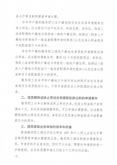 关于调整住房公积金业务有关政策的通知