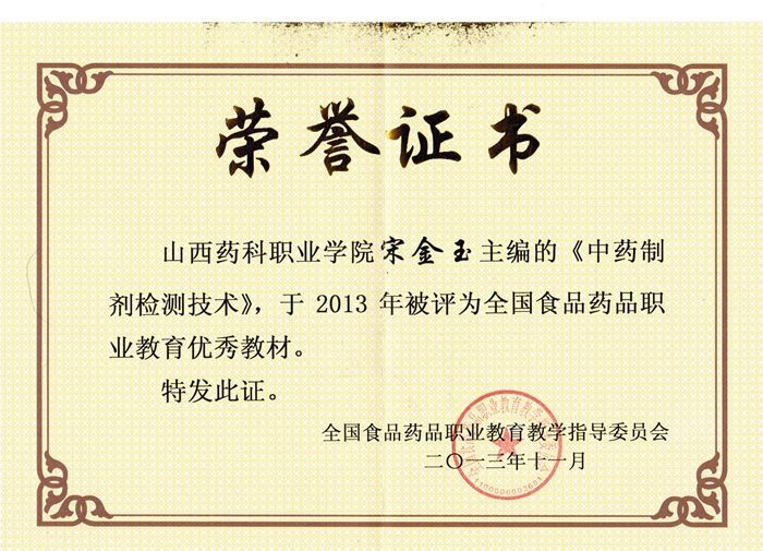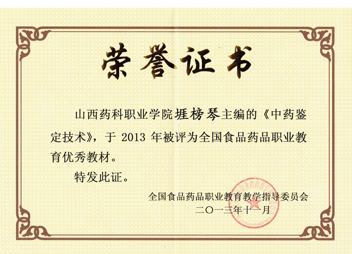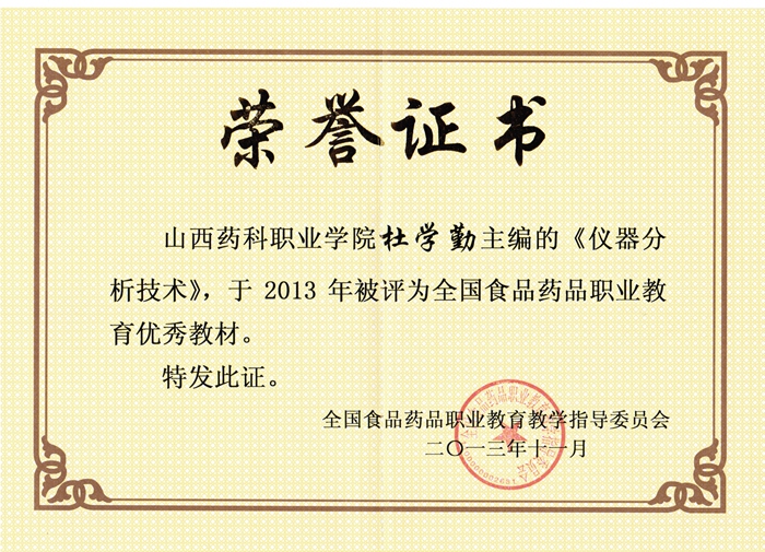 会上公布了2013年全国药品食品职业教育优秀教材评选结果并进行了颁奖。大会共评选出28部优秀教材,其中我院教师主编的《中药鉴定技术》、《药理学》、《中药调剂技术》、《药物化学》、《中药制剂检验技术》、《分析化学》、《仪器分析技术》7本教材名列其中。