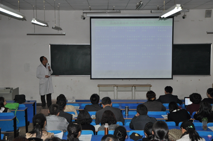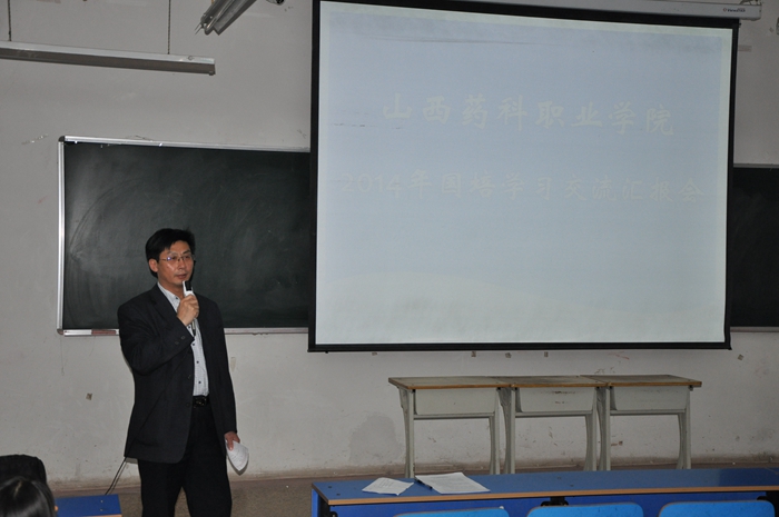 会上,白而力、胡清宇、张府君三位老师应用大量的图片,从不同角度分别将个人在药品质量检测技术专业骨干教师国家级培训的学习收获、感悟思考等内容进行了汇报交流。