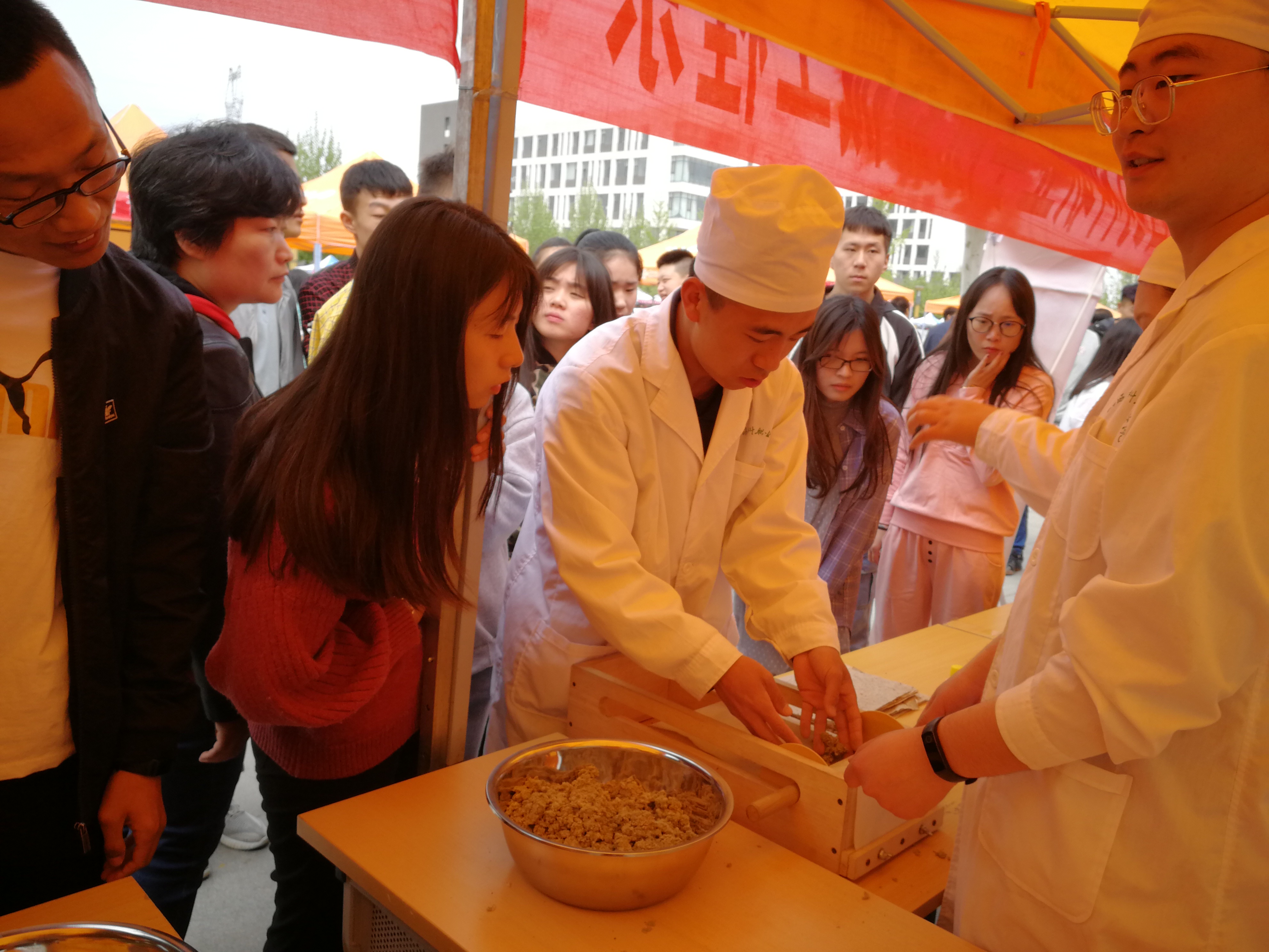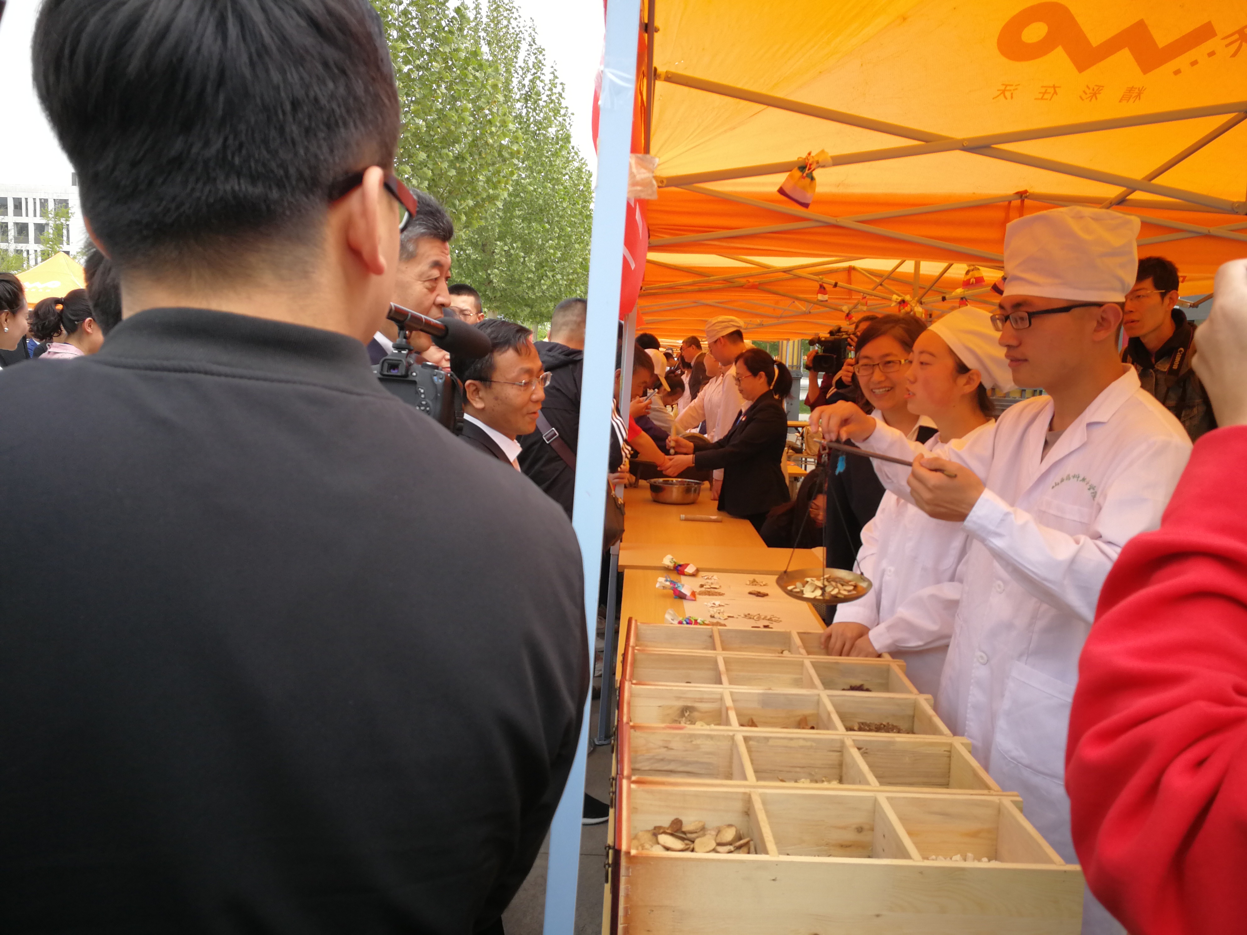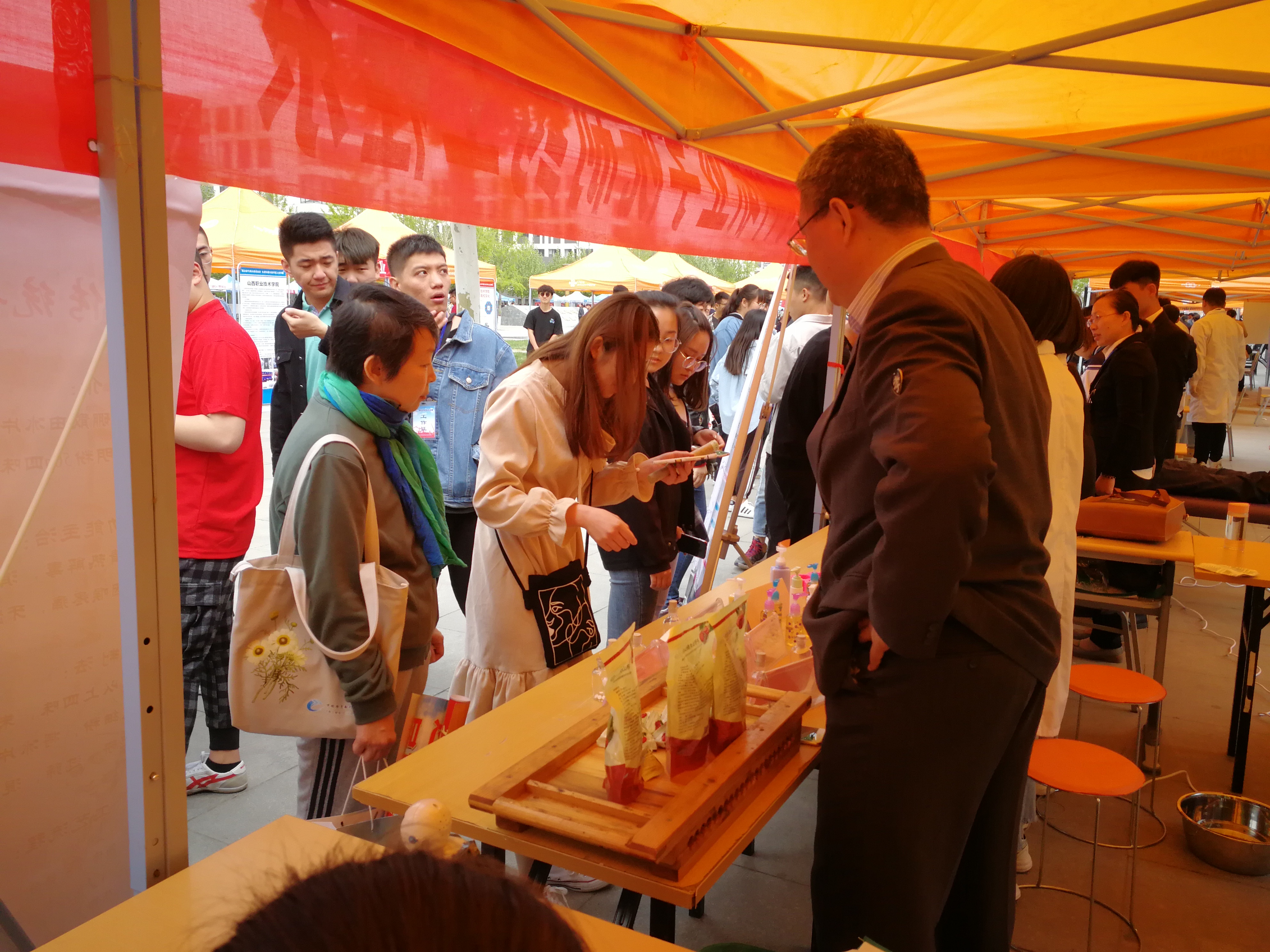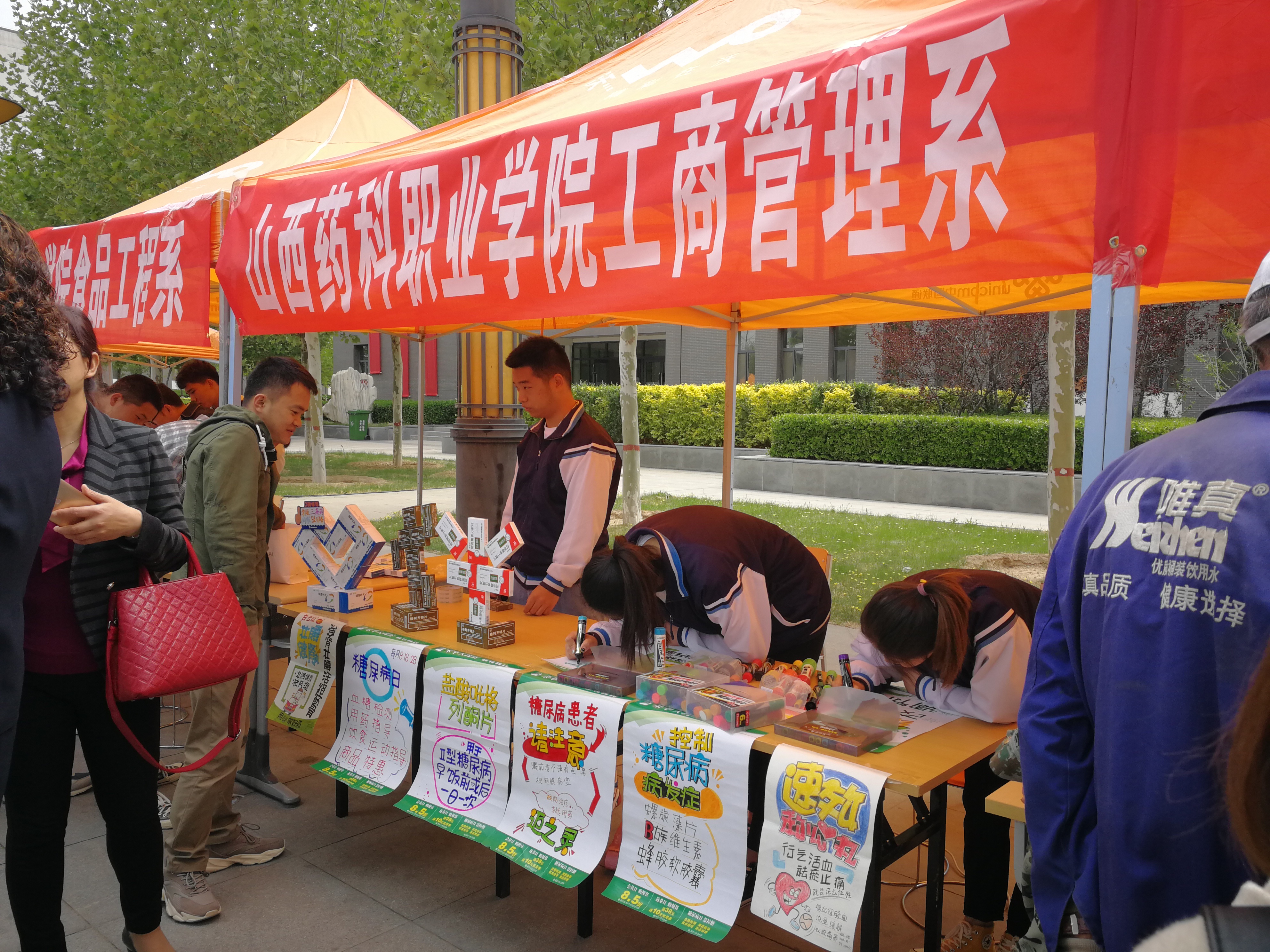 在活动现场,中药系师生展示了中药香囊、艾条传统制作工艺、中药饮片调剂传统技艺;制药工程系展示了山楂丸、片剂、苦瓜颗粒、磺胺胶囊等传统剂型和黄芩手工皂、洗手液、保湿乳液等洗护用品实训作品,学生还进行了牛奶手工皂、保湿乳液的职业技能展示;药学系进行了心肺复苏操作演示,现场开展了血压测量等便民服务;工商管理系学生现场绘制了POP海报并进行了药品陈列;器械工程系展示了单片机控制LED点阵显示、小机器人、小音箱和收音对讲机等学生实训作品;食品工程系展示了烘焙、蛋糕裱花等学生西点创意作品,现场演示了蔬菜中农药含量残留的检测技术。师生们的现场展示活动吸引了现场领导和众多兄弟院校师生的驻足观看,并纷纷参与了互动,当中药系学生按省政府副秘书长丁纪岗同志的要求准确完成10克药材的调剂操作时,在场领导和围观的群众为学生们精湛的技艺和扎实的专业素养表示了赞赏。