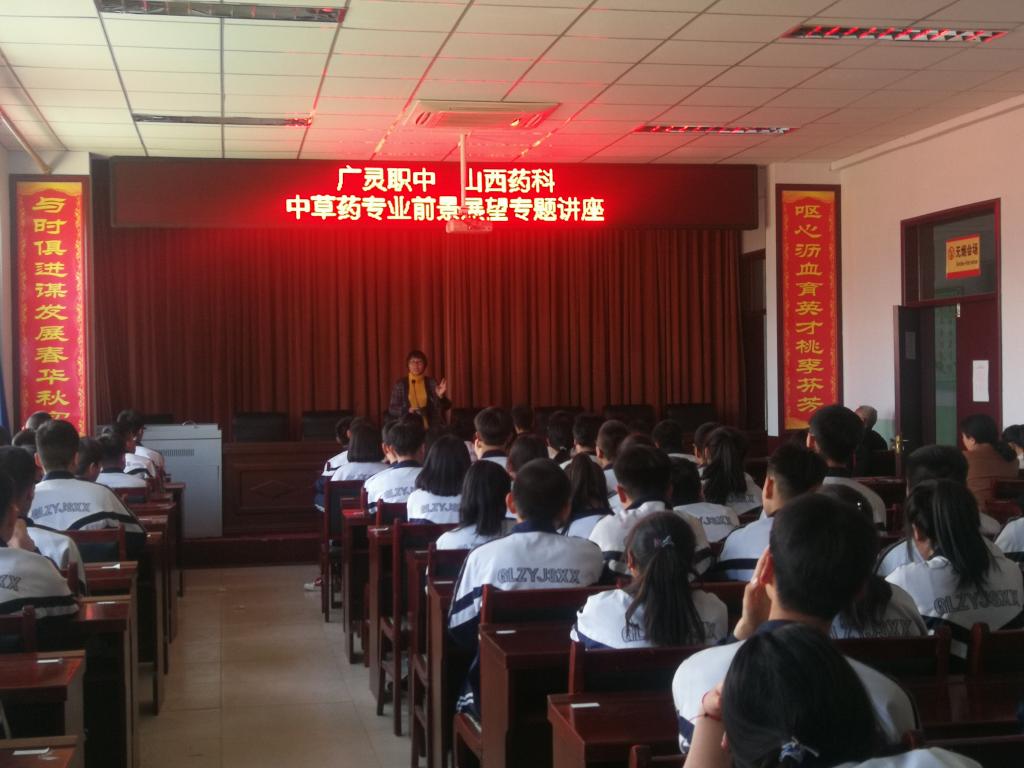 5月6日、7日,党政办公室相关人员和中药系蔡翠芳教授一行人员赴广灵开展了教育对口帮扶,为广灵职中师生专题讲座中草药专业前景展望,对广灵望狐乡药农进行了中草药种植培训。