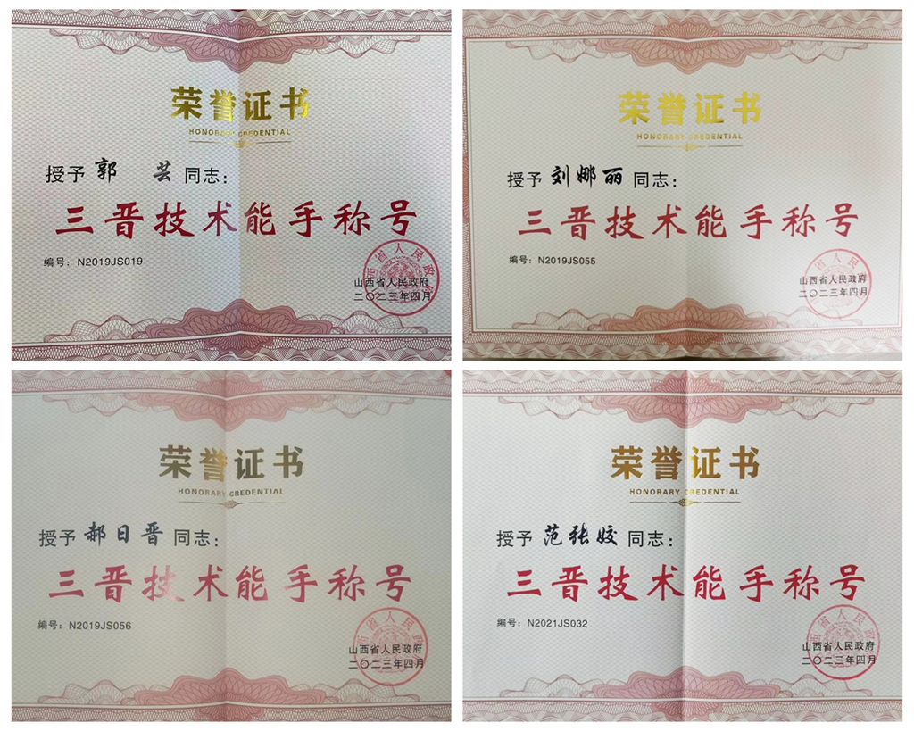 近日,山西省人民政府为2018-2021年度参加省级以上职业技能竞赛中取得优异成绩的选手授予“三晋技术能手”称号。我院教师郭芸、刘娜丽、郝日晋、范张姣获此殊荣。