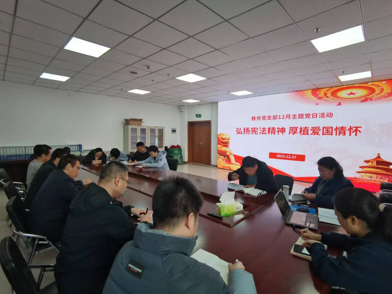 为弘扬法治精神,维护宪法权威,厚植爱国主义情怀,深入学习宪法知识,12月27日下午,教务党支部组织开展以“弘扬宪法精神 厚植爱国情怀”为主题的主题党日活动。支部书记程永杰同志主持活动。